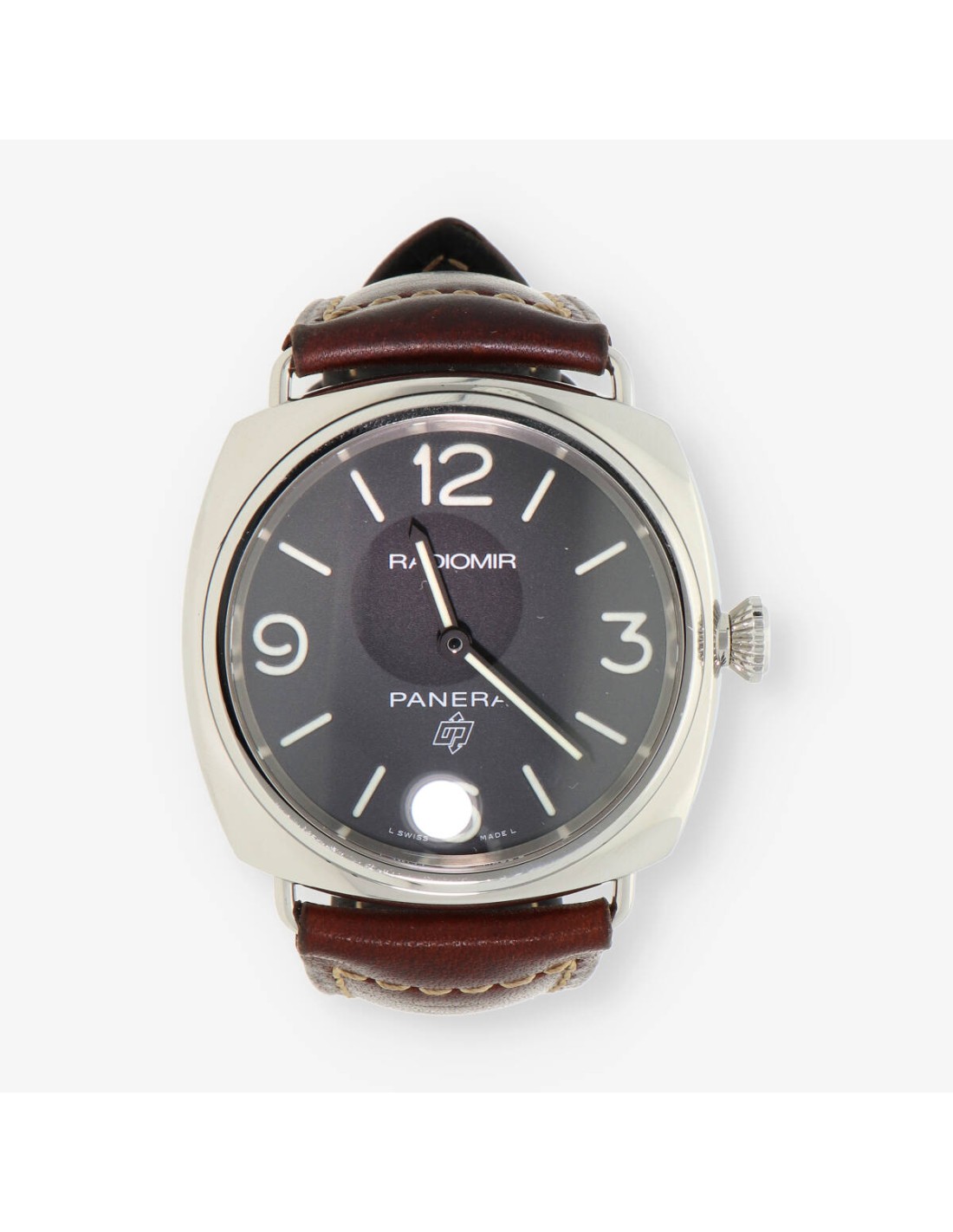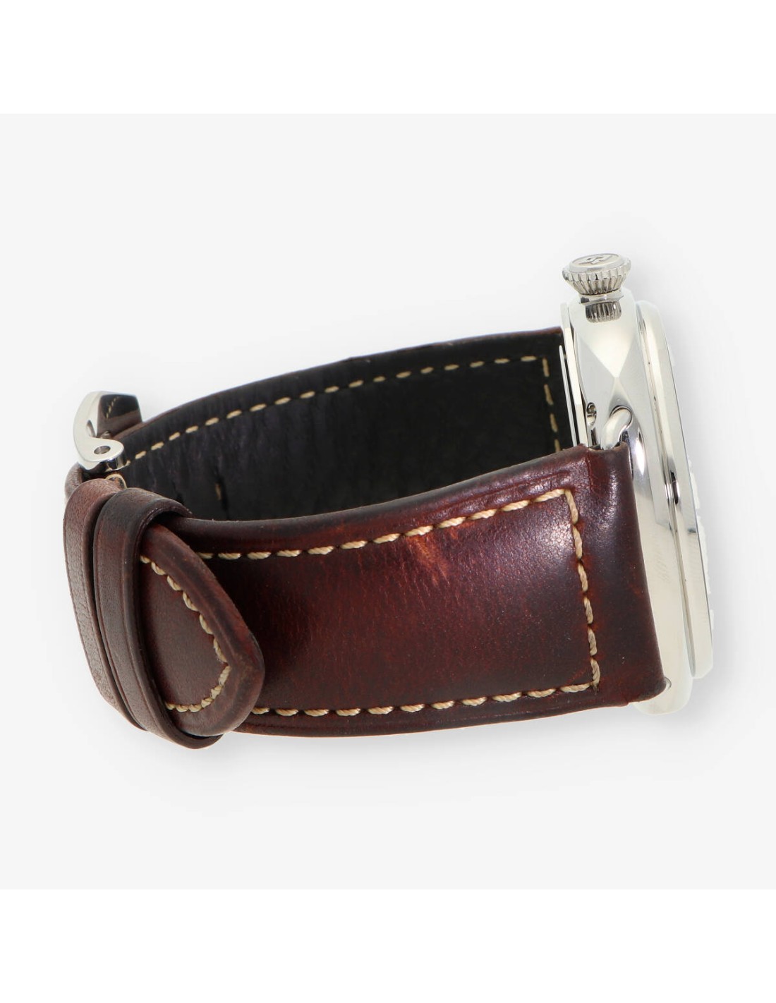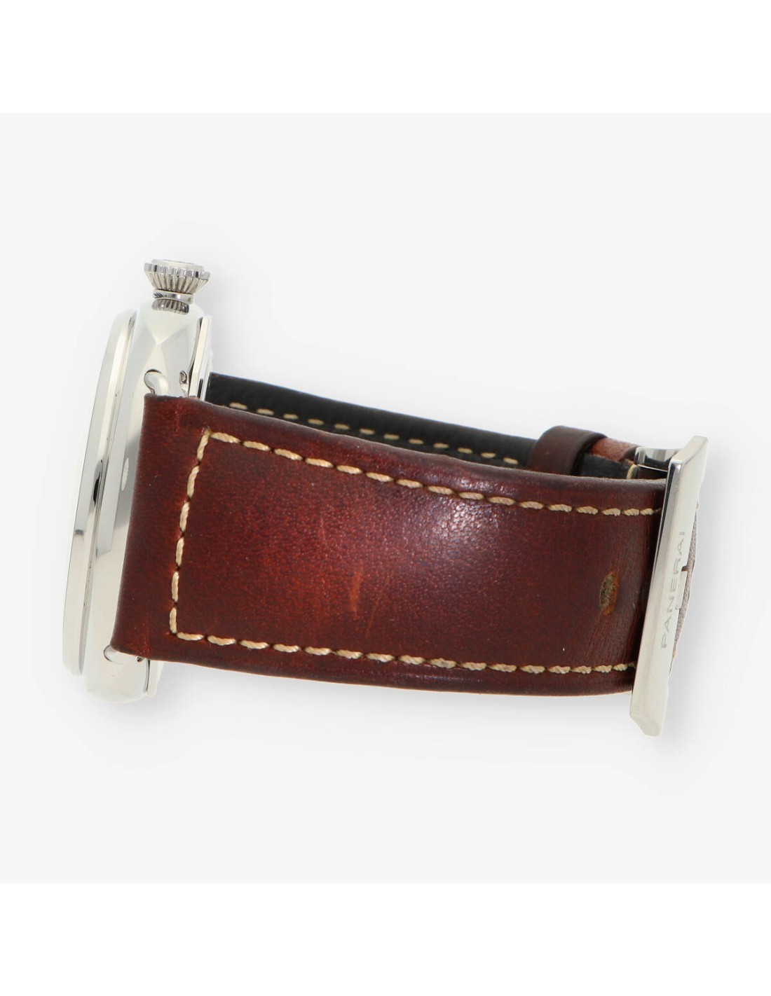 Magnífico Panerai de segunda mano en perfecto estado de marcha y conserbación. Referencia OP 7160 con un movimiento automático, caja en acero de 44mm, cristal zafiro fondo negro y números arábigos, resistencia al agua de 10 atmósferas. Coreal en piel marron y cierre de broche pegable en acero.