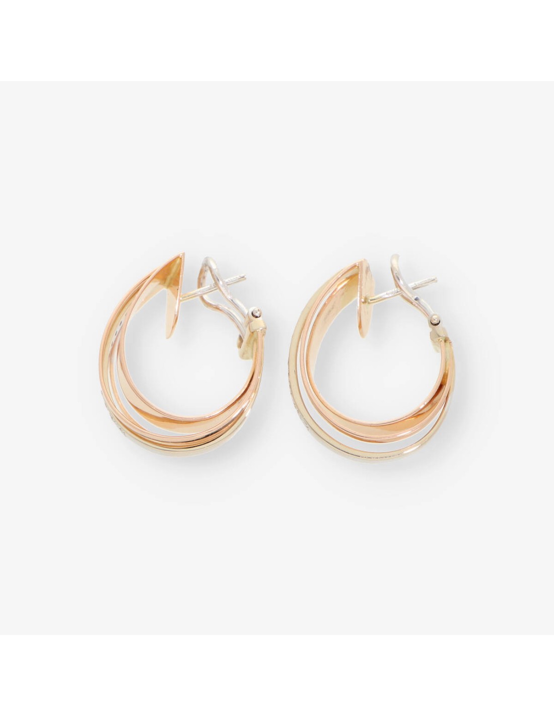 Preciosos pendientes de segunda mano en oro rosa de primera ley en forma de aro con un magnífico acabado con brillantes. Ideal para cualquier momento. Diámetro: 2cm. Grosor: 0.8cm. Peso: 13.3gr.