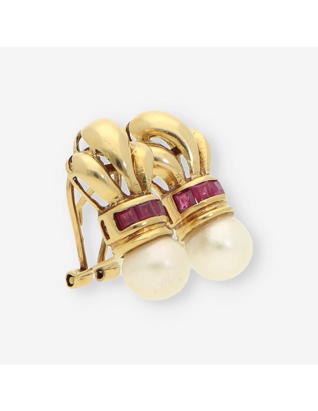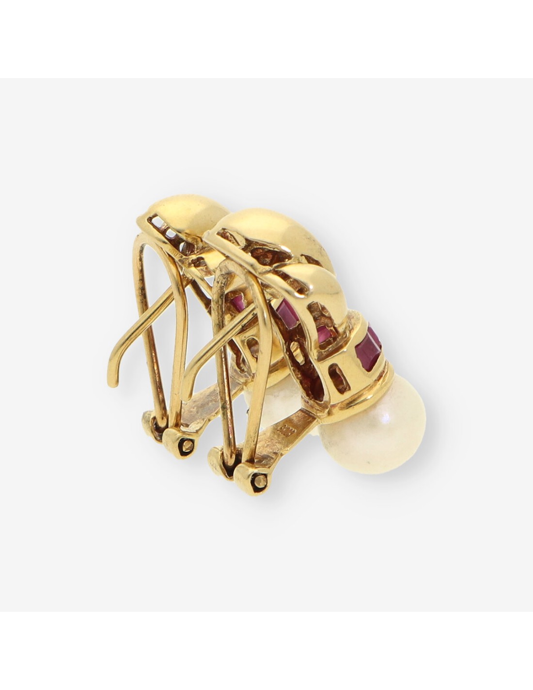 Pendientes de oro amarillo 18kt con piedra roja y perla