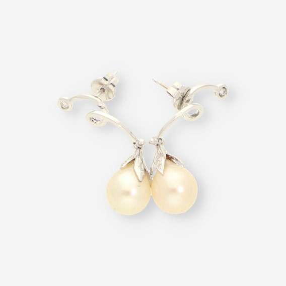 Pendientes de oro blanco 18kt con perla y brillantes