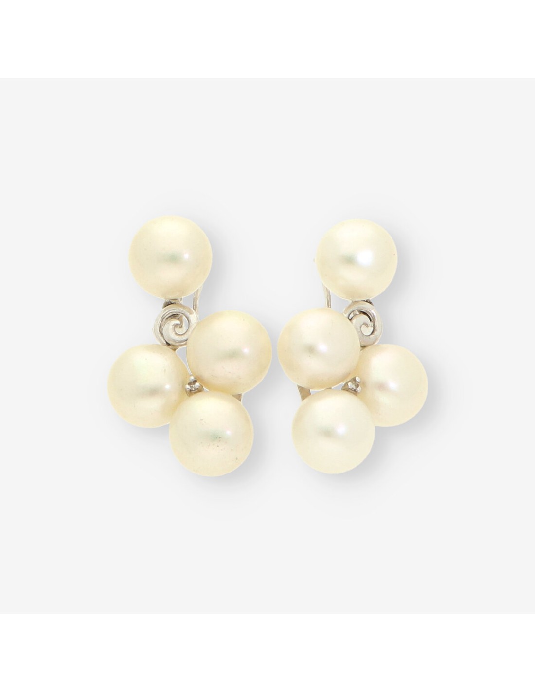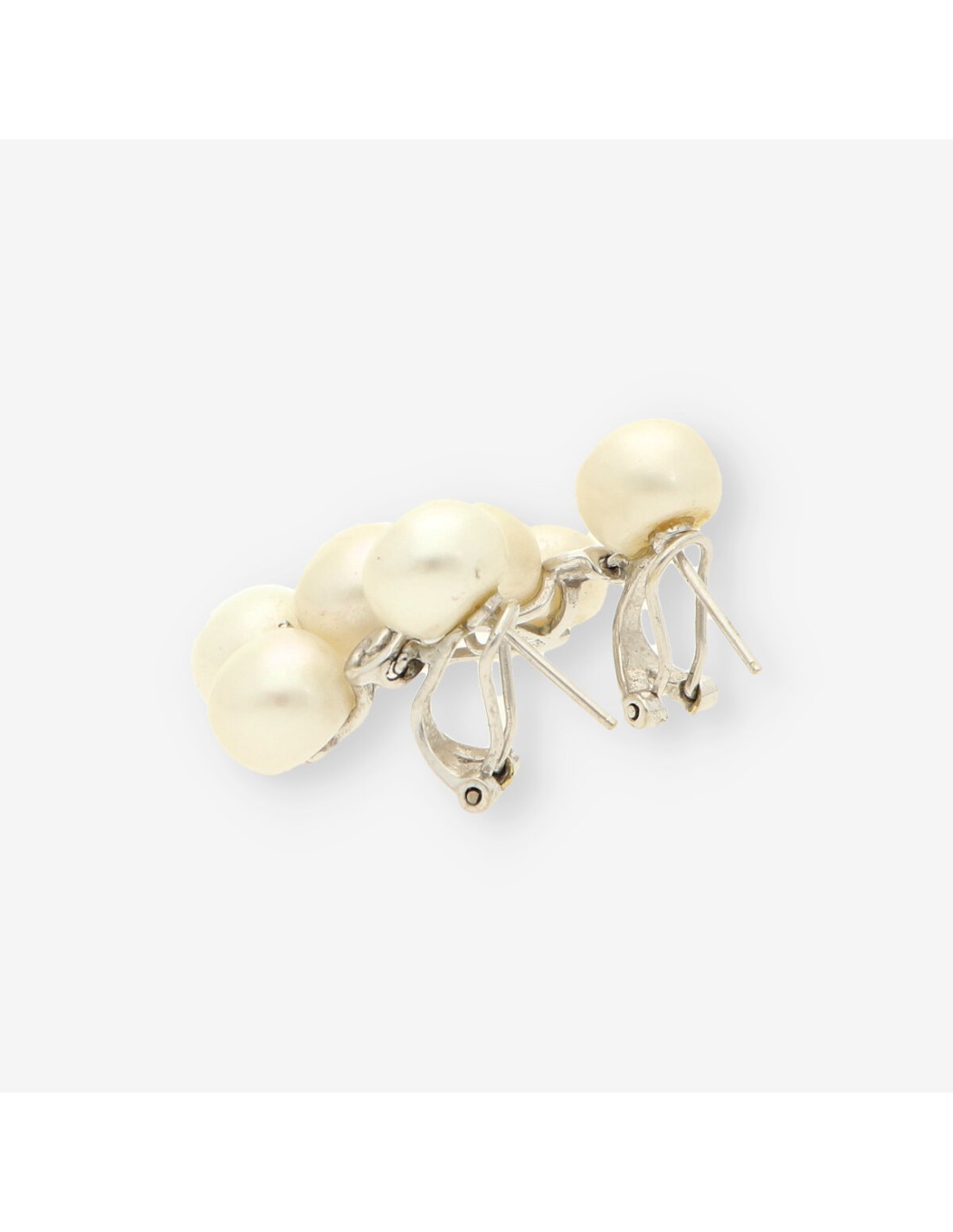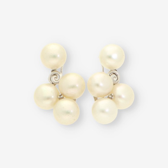 Pendientes de oro blanco 18kt con perlas y brillantes, cierre omega