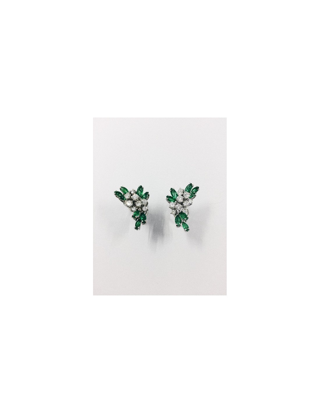 Pendientes de oro blanco, brillantes y esmeraldas.