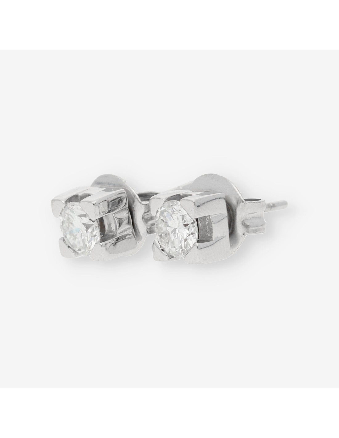 Impresionantes pendientes de segunda mano en oro blanco de primera ley con brillante. Quilates en brillante total: 1qt (aprox). Peso: 4.8gr. Una pieza ideal para cualquier momento.