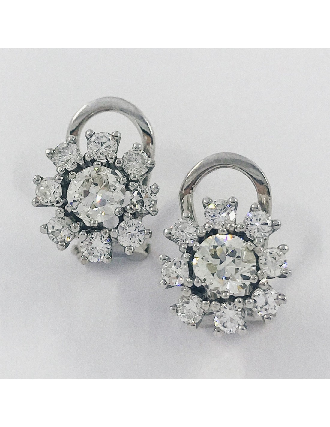 Preciosos pendientes en oro blanco con un brillante central de 0,4qt. (Aprox) y brillantes a su alrededor. Un regalo perfecto e ideal para cualquier situación. Peso: 5,1gr.
