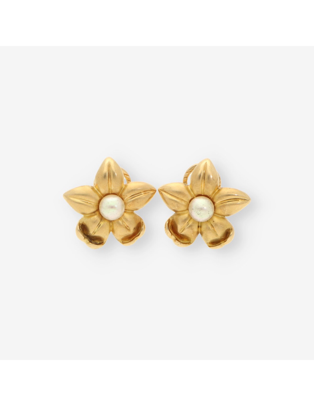 Estos pendientes de flor de segunda mano, confeccionados en oro de primera ley, presentan un diseño encantador con una perla central que añade un toque de elegancia natural. Con un diámetro de 1.8 cm y una longitud total de 7.4 cm, estos pendientes son una declaración de estilo y sofisticación. El cierre omega asegura un ajuste cómodo y seguro. Perfectos para realzar cualquier atuendo, estos pendientes combinan delicadeza y distinción, ideales para ocasiones especiales.