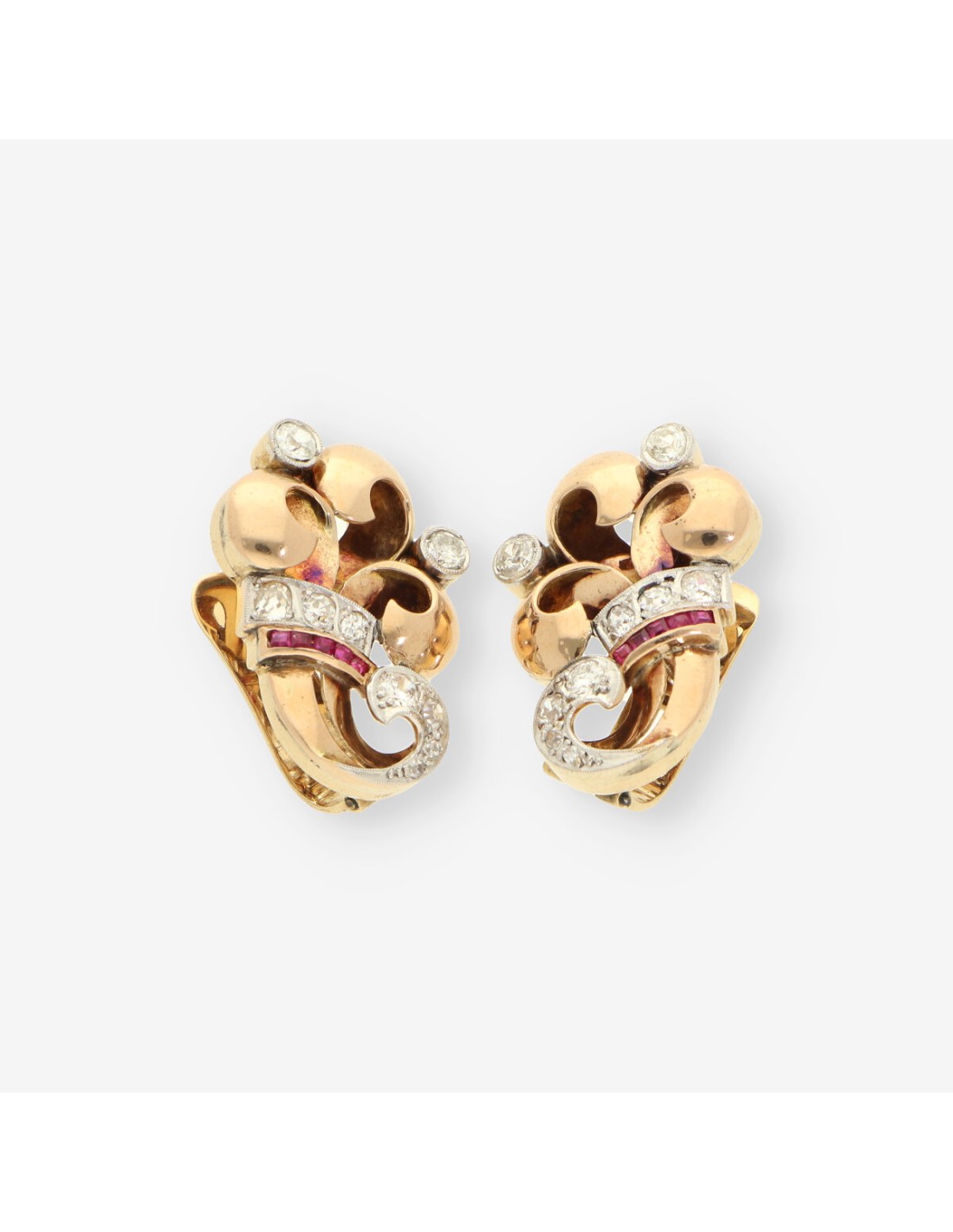 Pendientes Vintage de oro 18kt con diamantes y cierre catalán