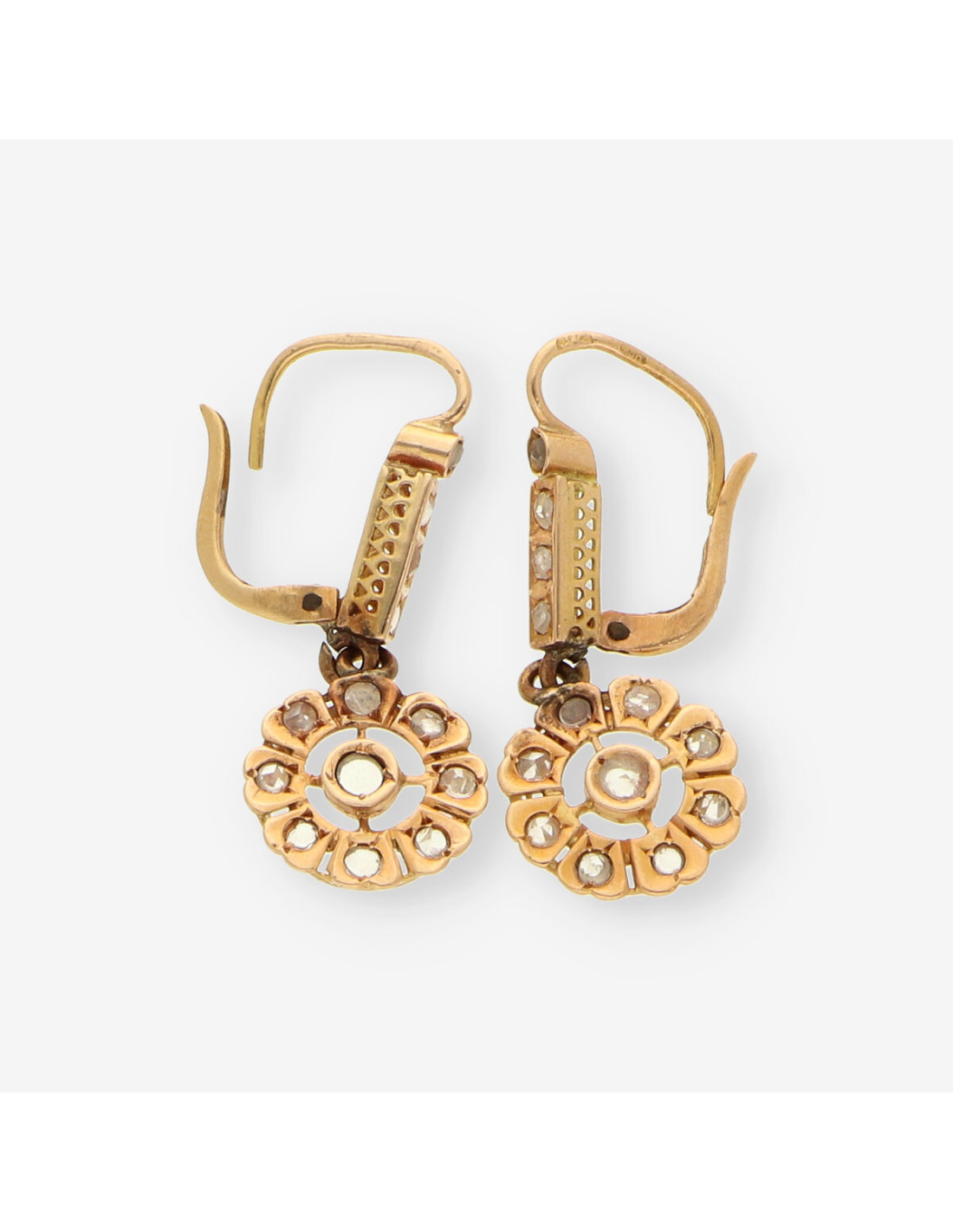 Pendientes vintage oro 18kt y zafiritos blancos con cierre catalán