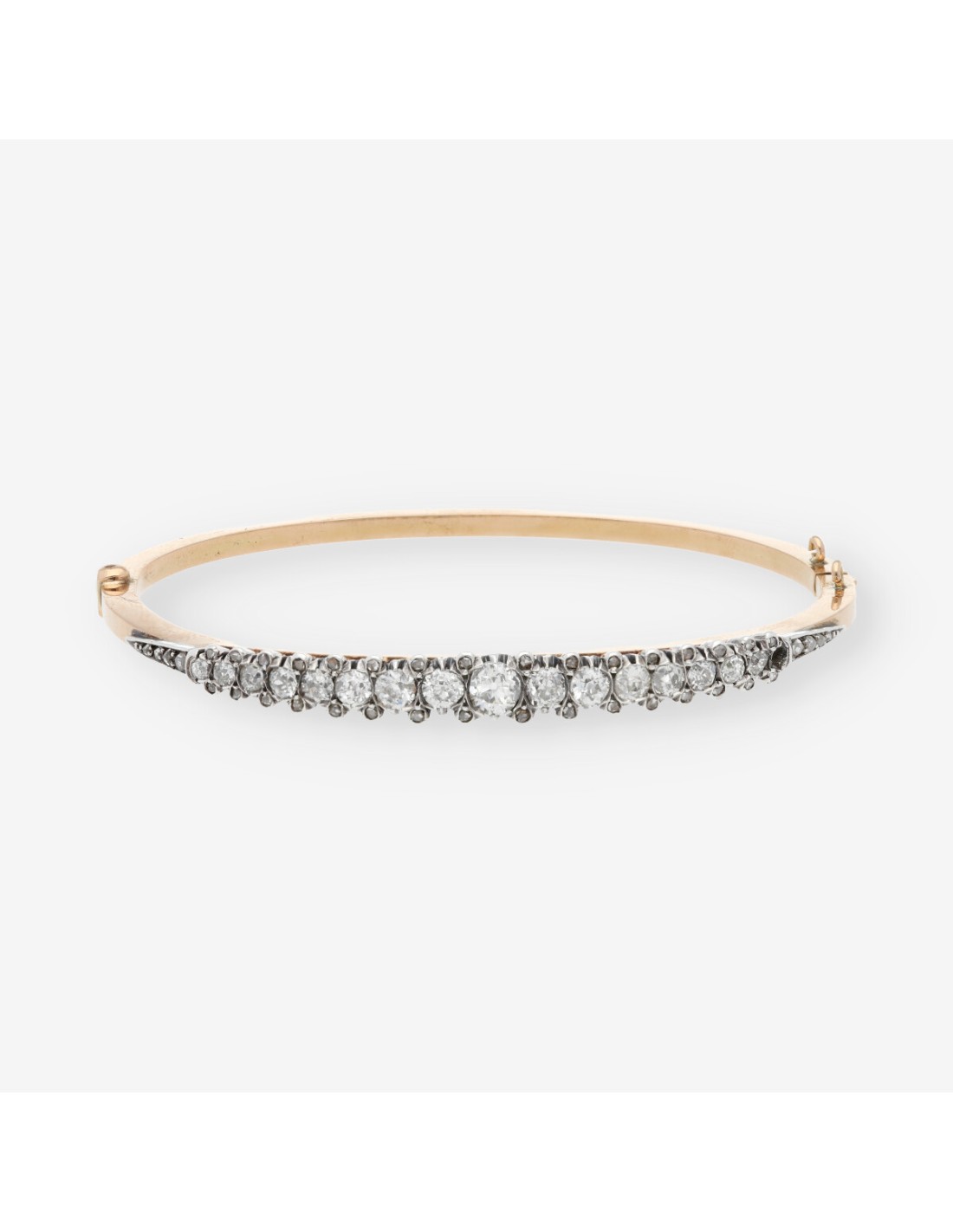 Preciosa pulsera de segunda mano en oro amarillo de primera ley con diamantes antiguos, con un magnifico diseño, ideal para momentos especiales. Peso: 10.2gr.