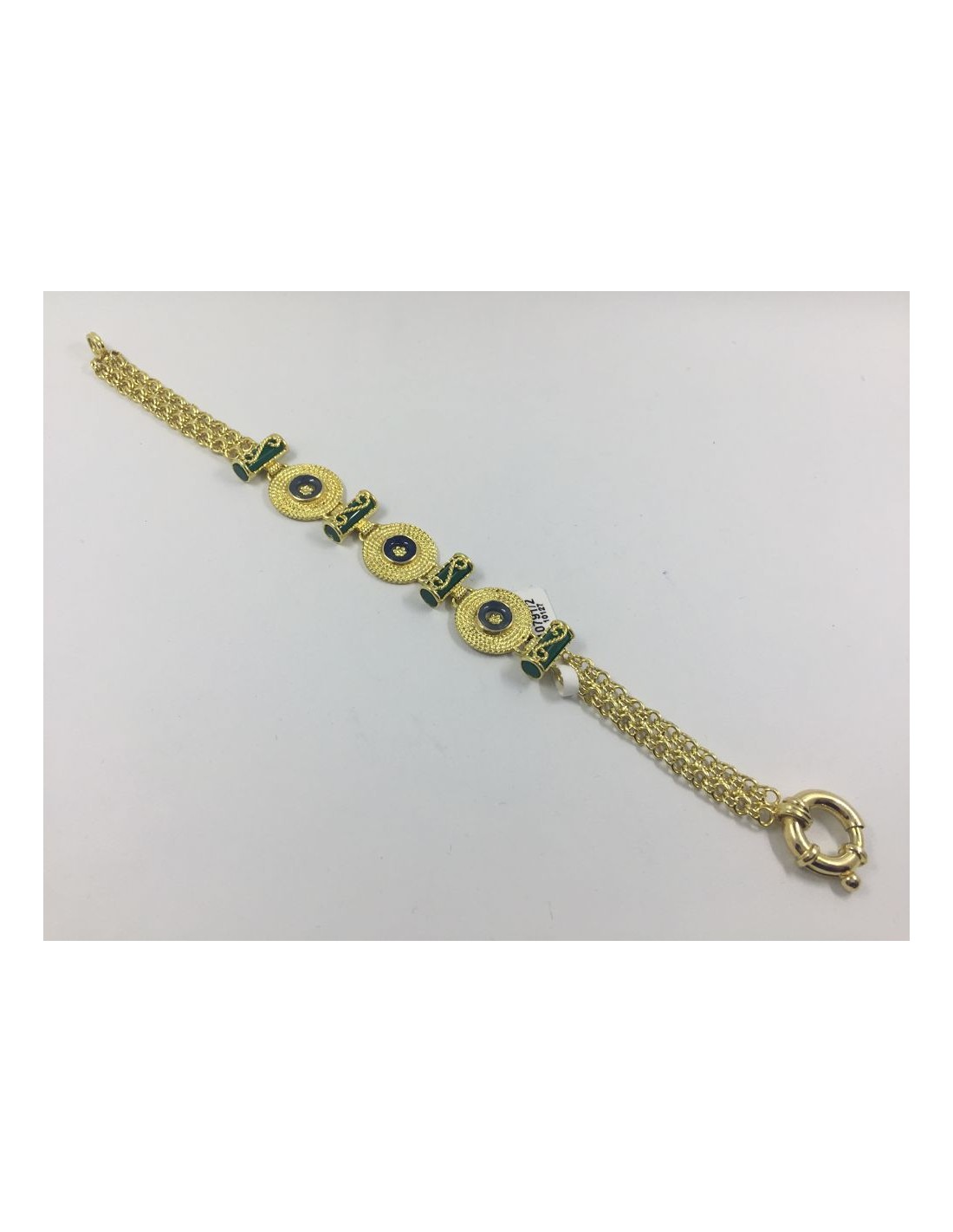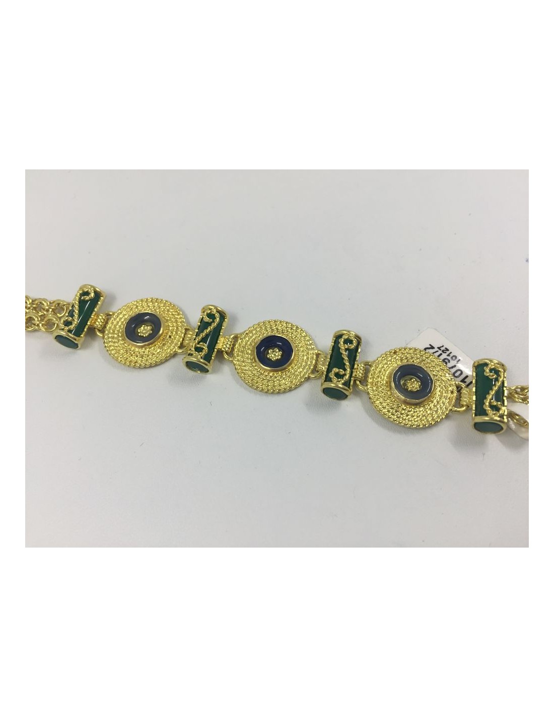Pulsera de segunda mano en oro amarillo de 18 kt. y piedras de color. Longitud: 19 cm. Peso: 28,5 gr.