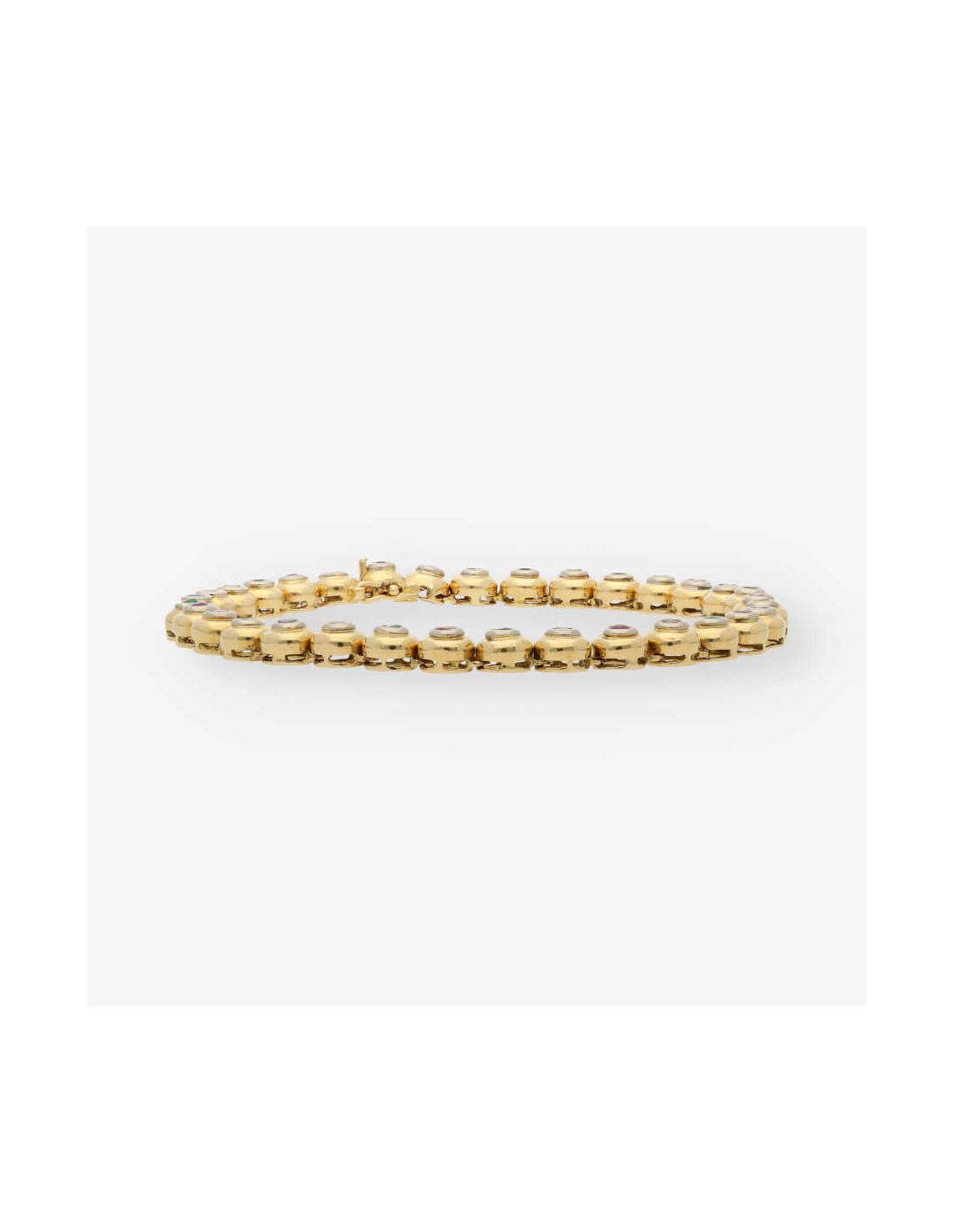 Preciosa pulsera de segunda mano en oro amarillo de primera ley. Una pieza clásica y elegante, ideal para los amantes de pulseras. Largo: 19.5cm. Peso: 16gr.
