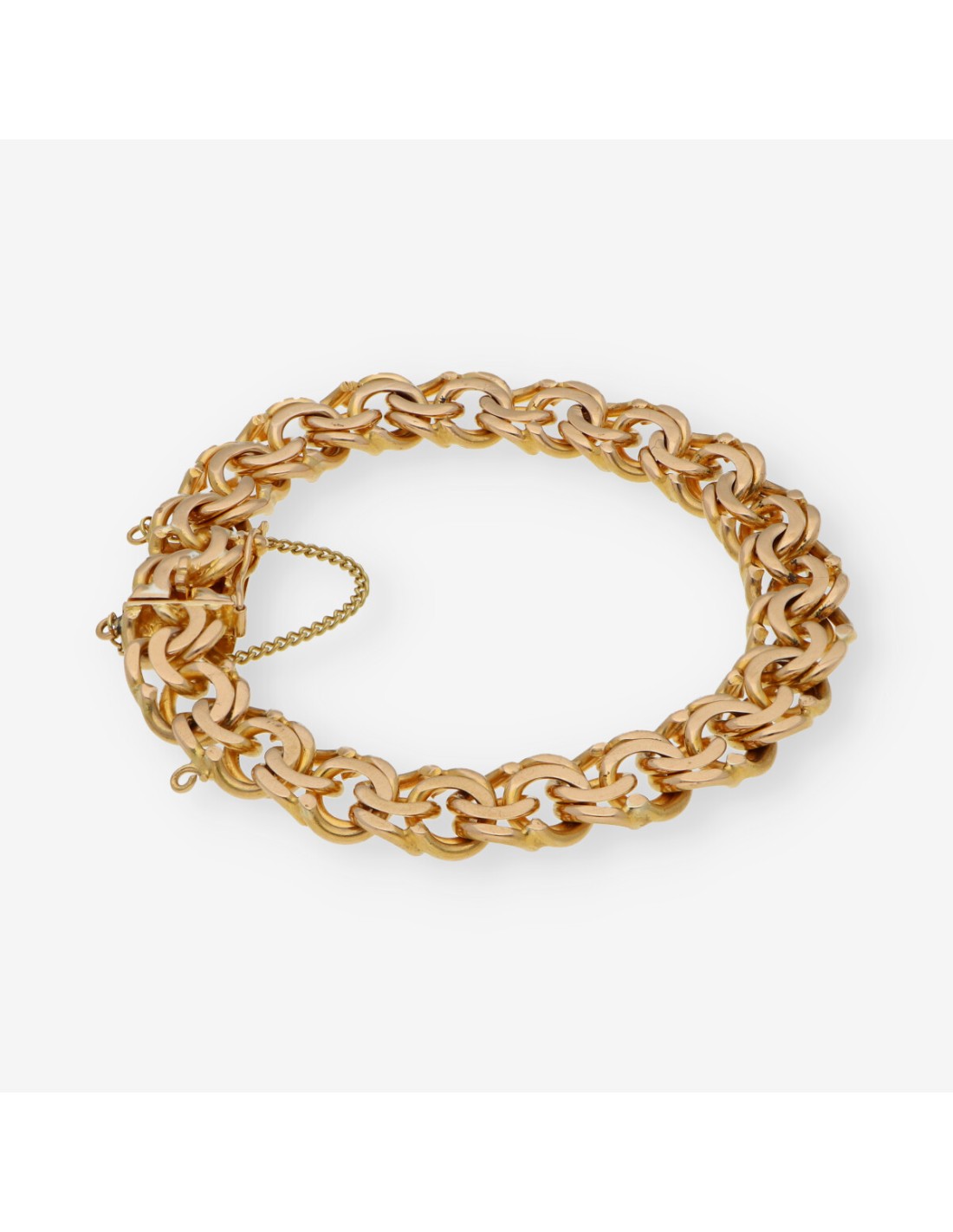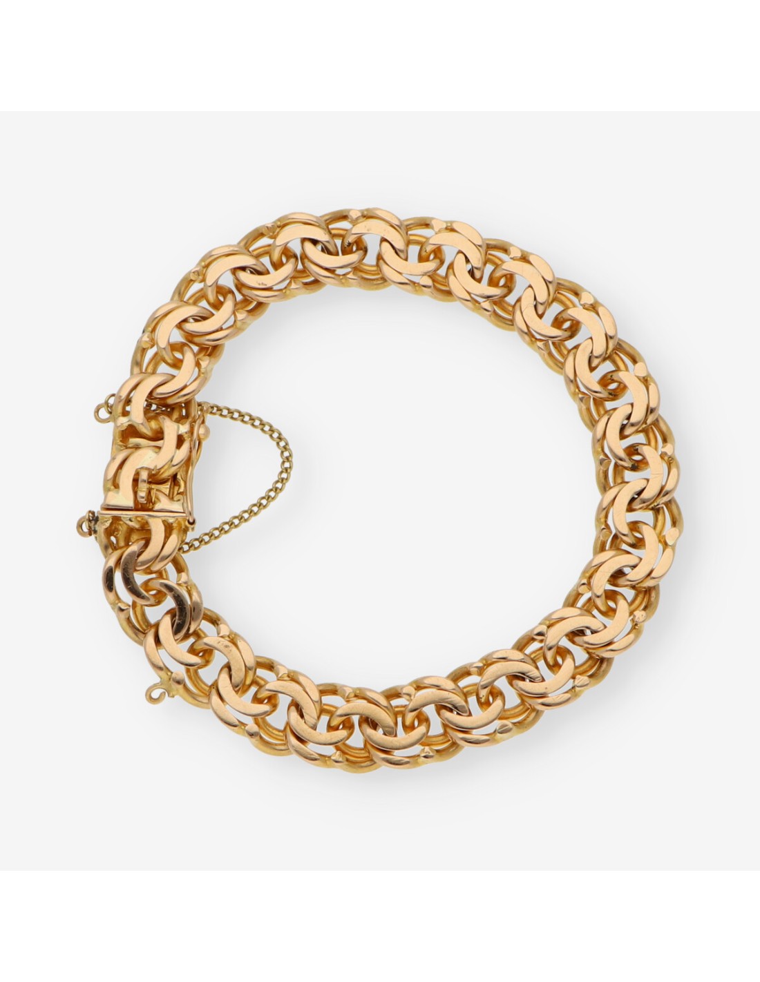 Preciosa pulsera de segunda mano para caballero en oro de primera ley. Una pieza clásica y elegante, ideal para los amantes de pulseras. Longitud: 20cm. Grosor: 0.9cm. Peso: 40.94gr.