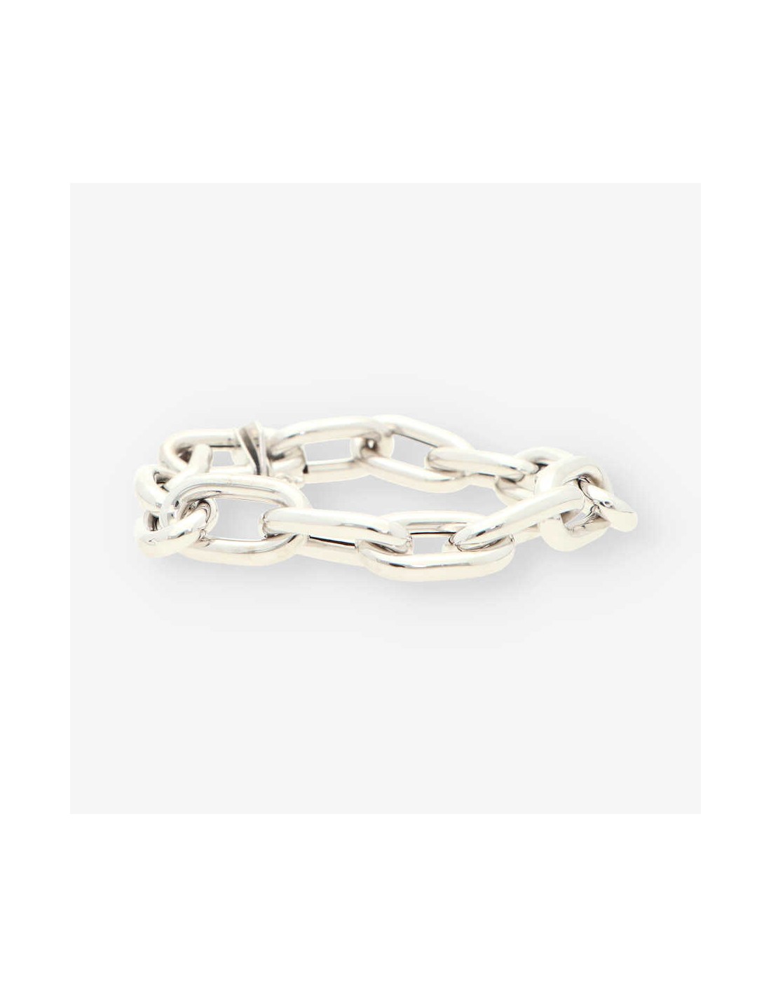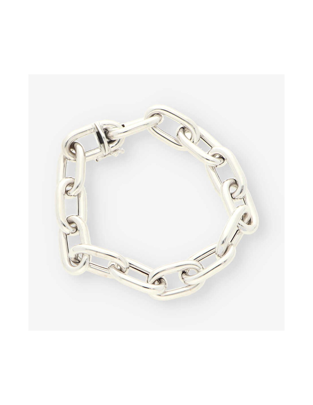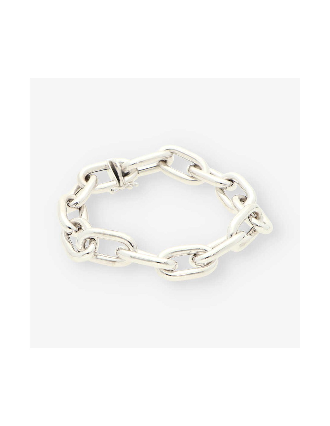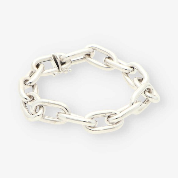 Preciosa pulsera de segunda mano en oro blanco de primera ley. Una pieza clásica y elegante, ideal para los amantes de pulseras. Longitud: 21.5cm. Grosor: 1cm. Peso: 21.6gr.