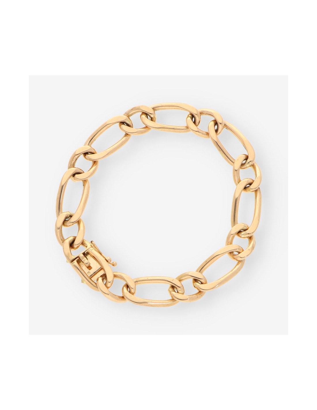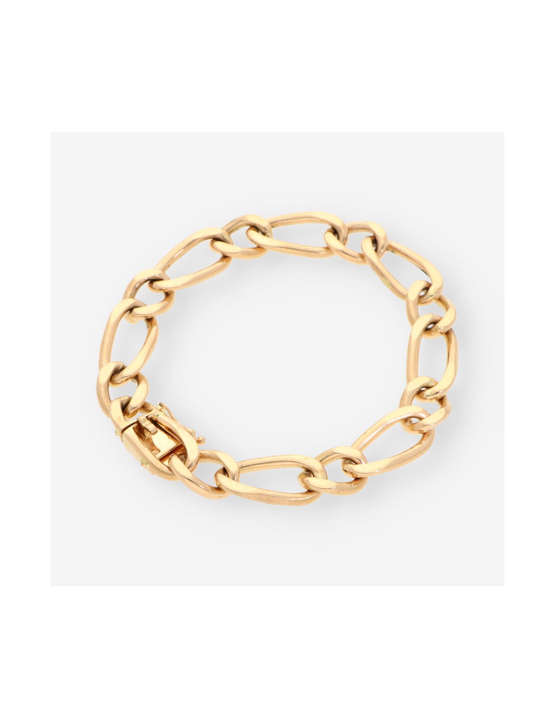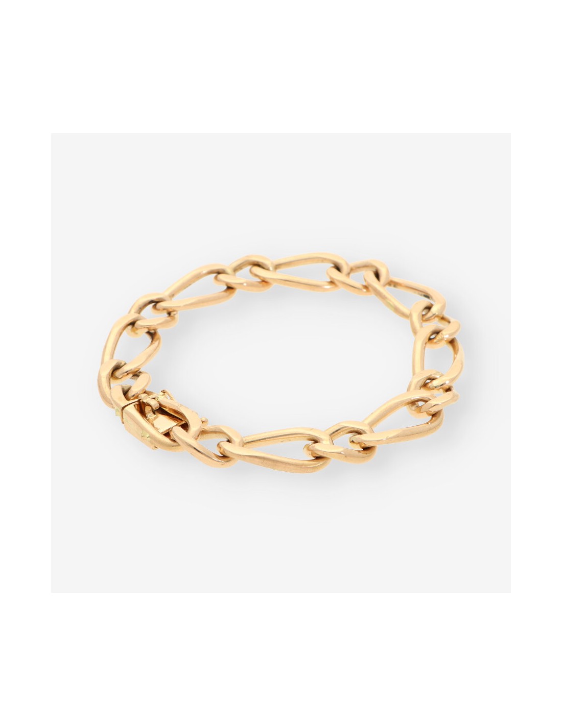 Pulsera de oro amarillo de 18 quilates, una joya clásica y refinada. Con un diseño robusto de eslabones, esta pulsera tiene un largo de 20,4 cm y un ancho de 1 cm, con un peso total de 42,3 gramos. Una pieza de segunda mano en excelente estado, perfecta para complementar cualquier look con un toque de lujo y distinción.