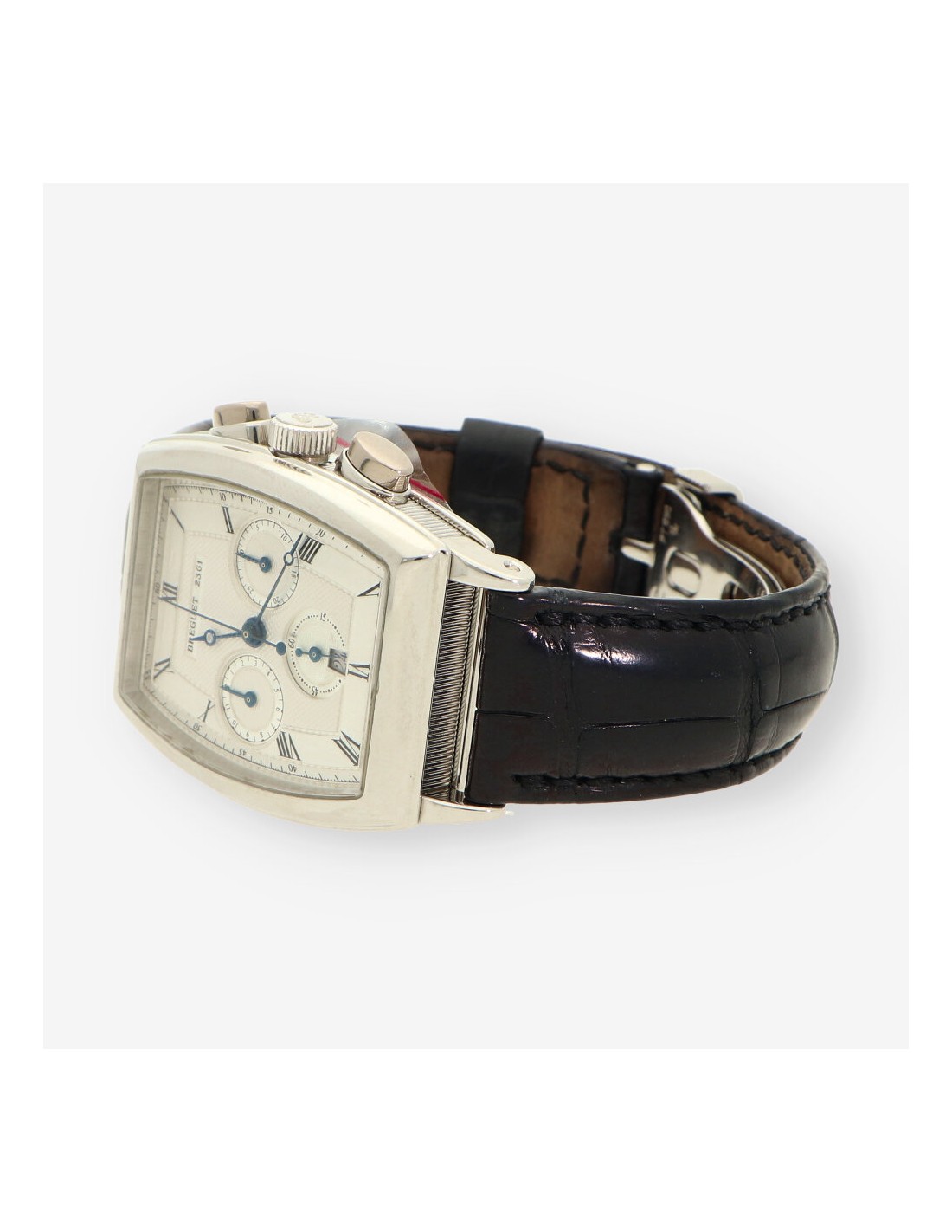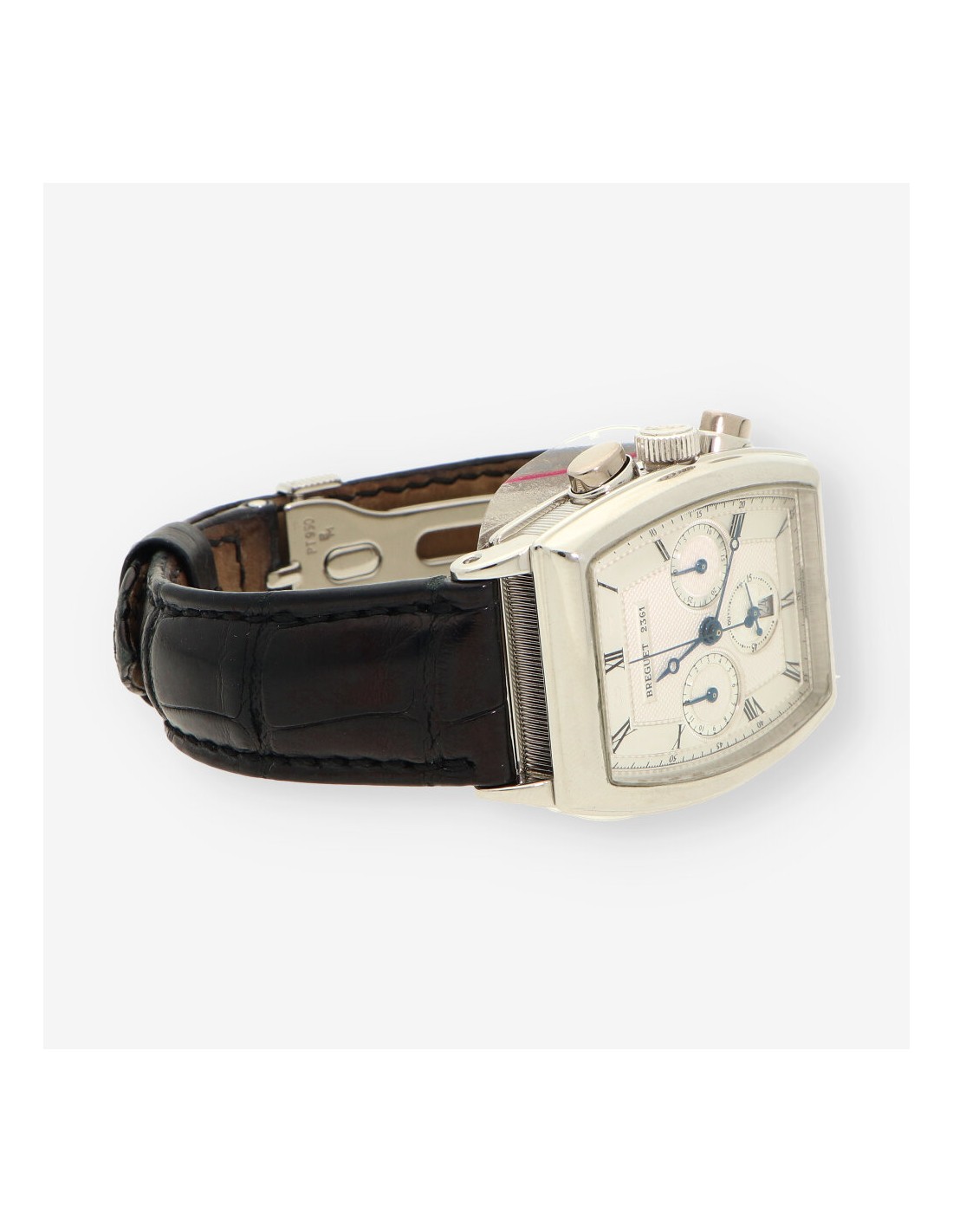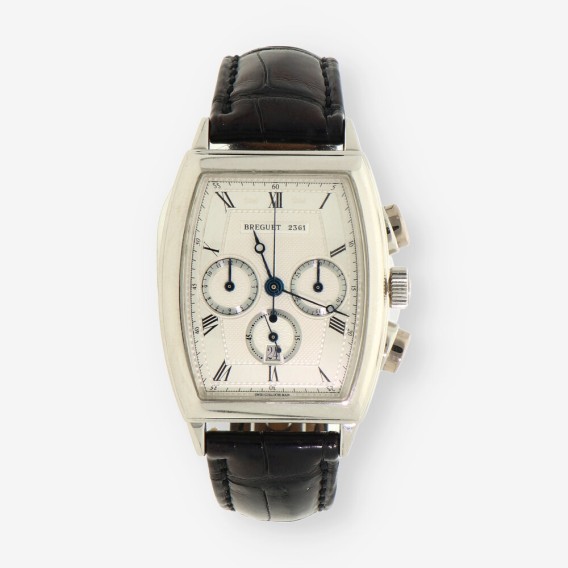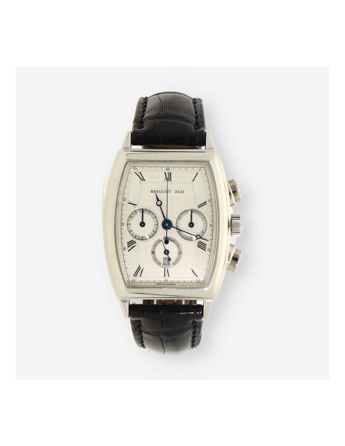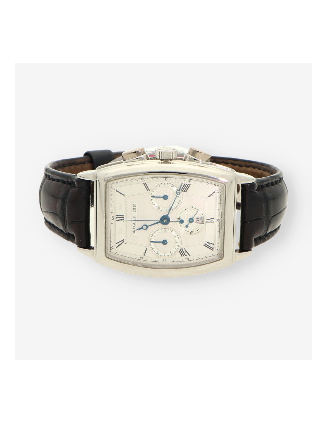 Precioso Breguet Heritage Platinium 5460 combina elegancia clásica y precisión suiza en una caja de platino con cristal de zafiro. Presenta un calibre automático con cronógrafo y fecha, realzado por una esfera plateada con números romanos y decoración guilloché. Su correa de piel de aligátor negra con hebilla de platino completa este reloj exclusivo, ideal para coleccionistas exigentes.