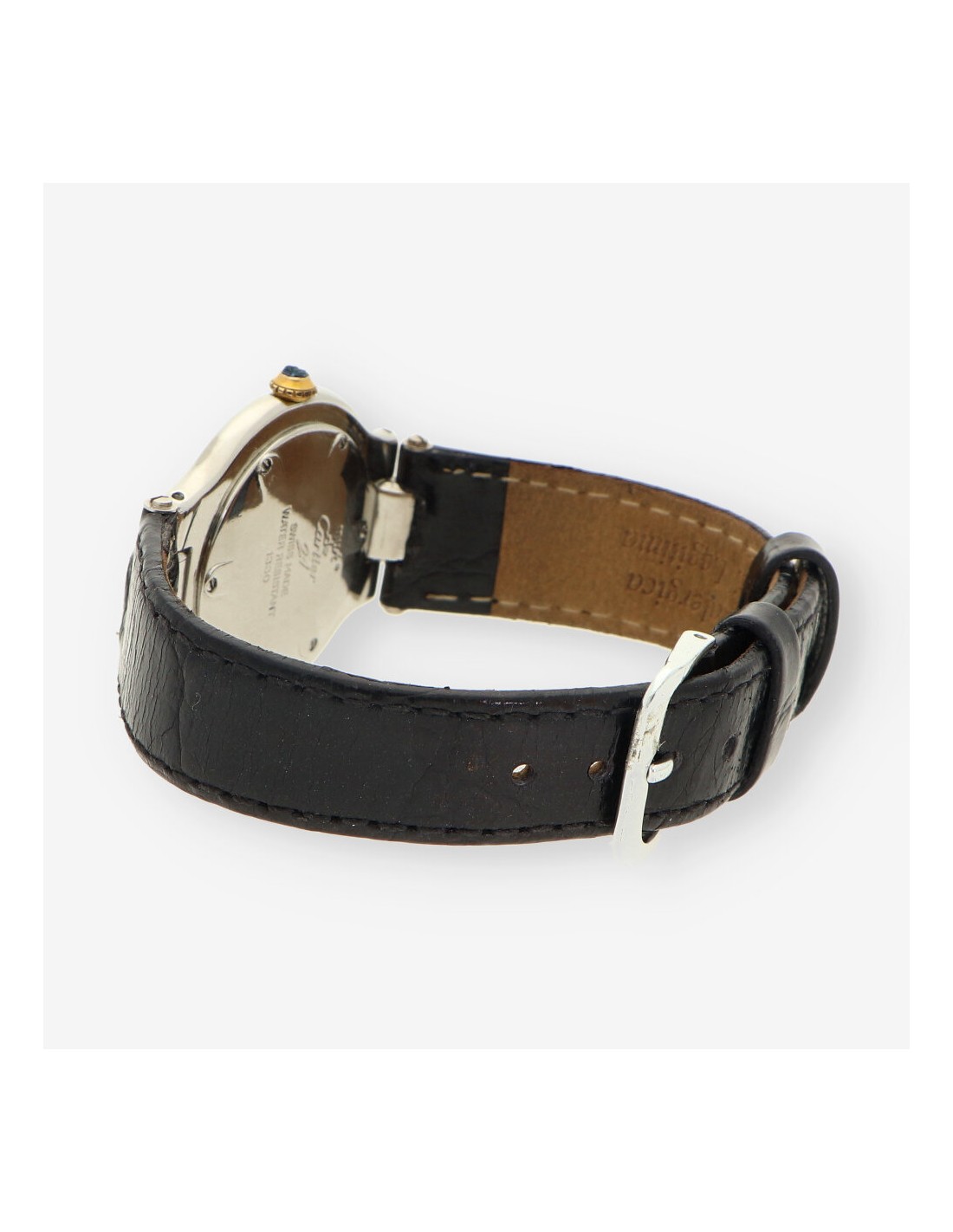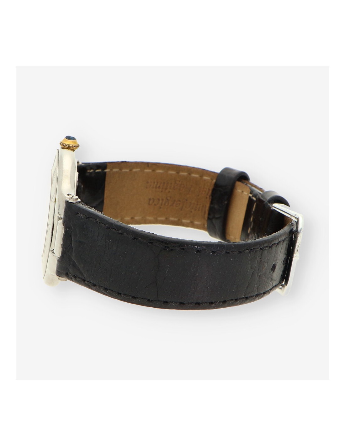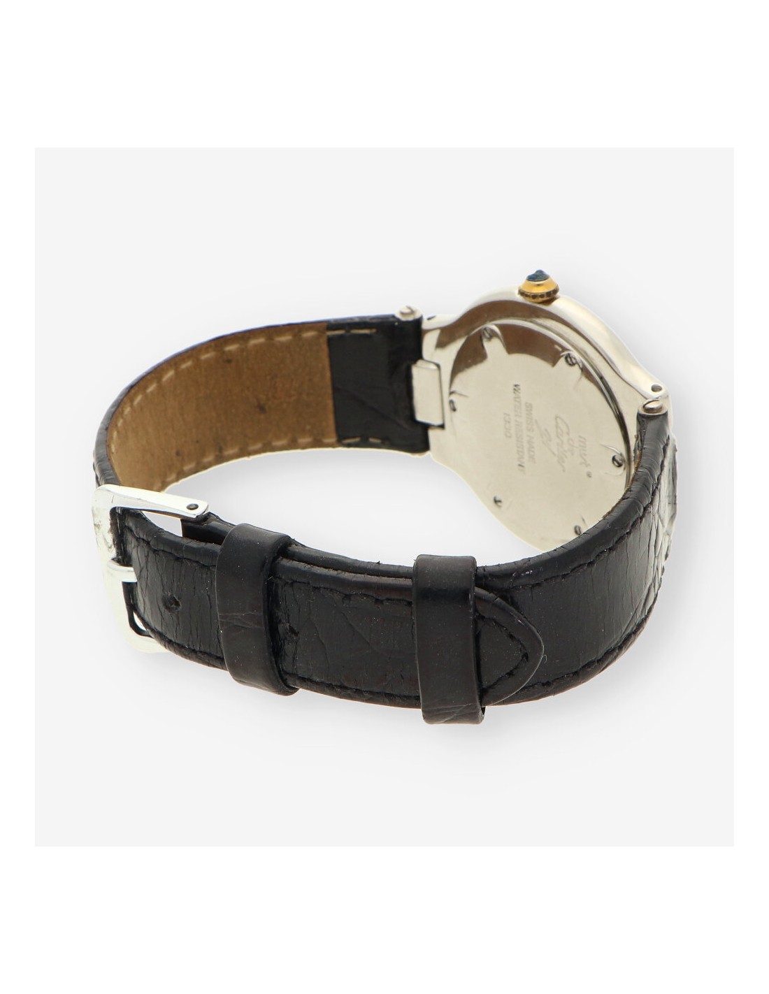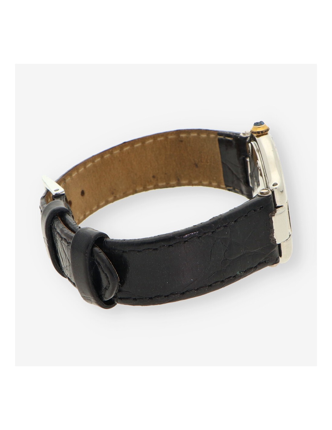 Precioso 21 Must de Cartier en acero y oro con calibre de cuarzo, caja de 31 mm y bisel bicolor. Su esfera blanca aporta un aire clásico, mientras que la correa de piel en color negro con cierre desplegable doble en acero combina comodidad y elegancia. Un reloj refinado y atemporal que refleja el estilo inconfundible de Cartier.