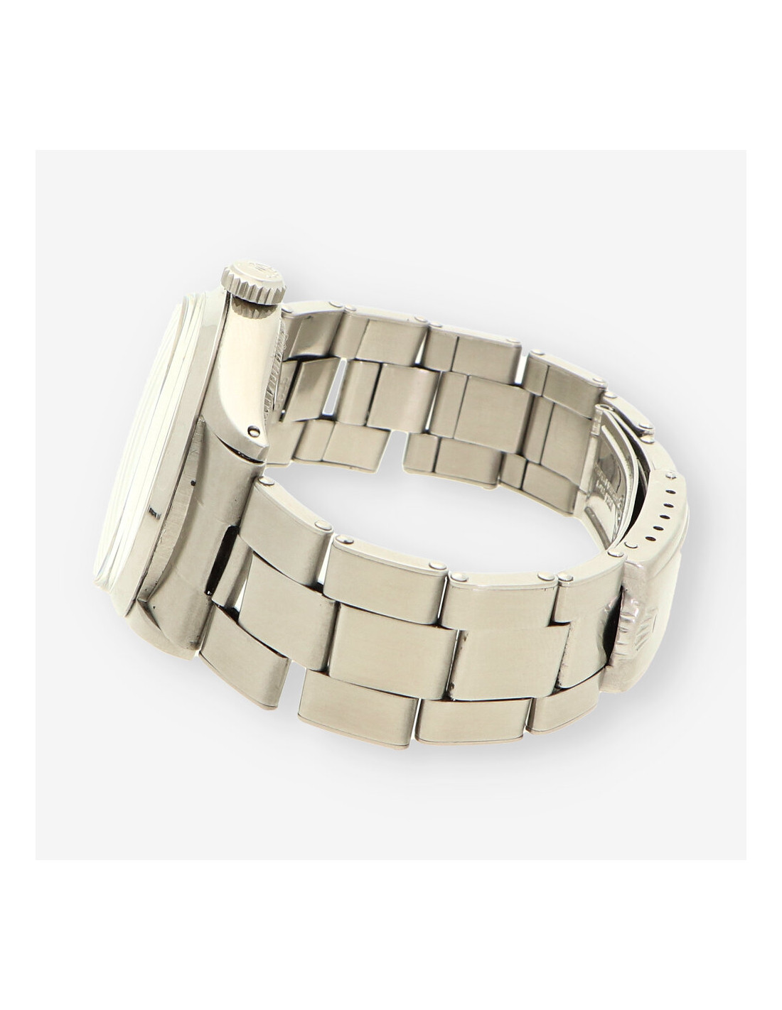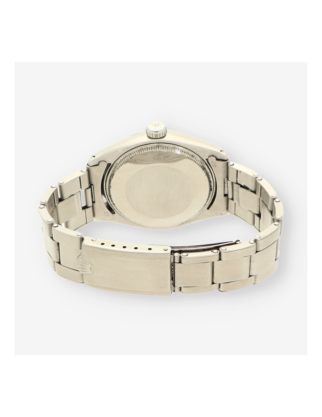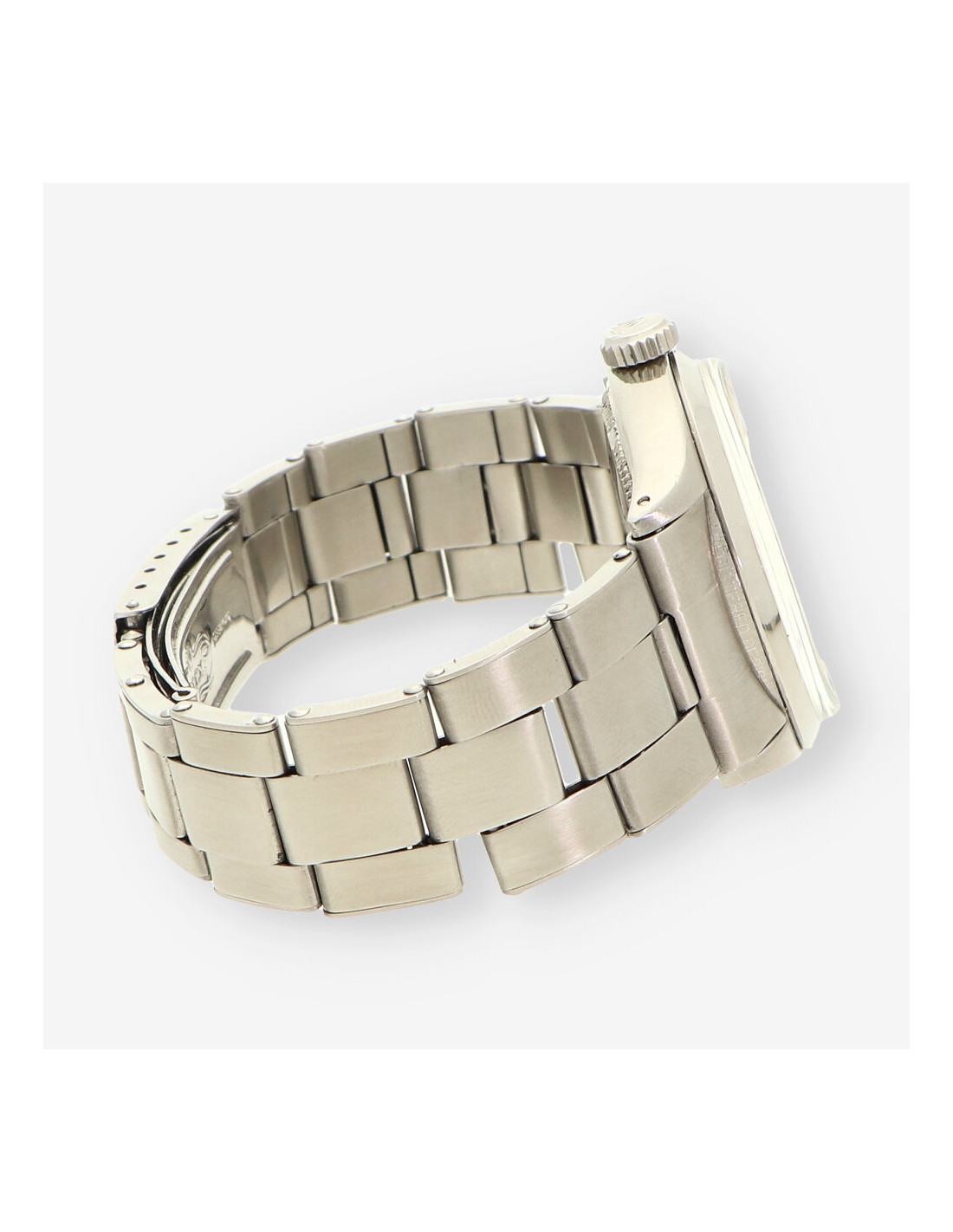 Este clásico reloj Rolex Air King, modelo 5500 de los años 60, está elaborado en acero y cuenta con el calibre automático 1520. Ofrece una reserva de marcha de 40 horas y tiene 26 joyas para asegurar un funcionamiento preciso. La caja de 34 mm, resistente al agua hasta 10 ATM, está protegida por un cristal de Plexiglas. Ideal para quienes buscan un reloj icónico con un diseño limpio y atemporal, que combine durabilidad y estilo clásico.