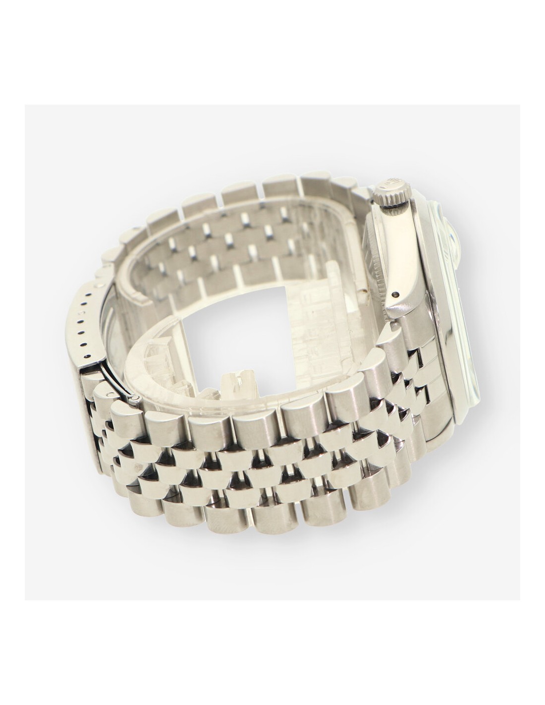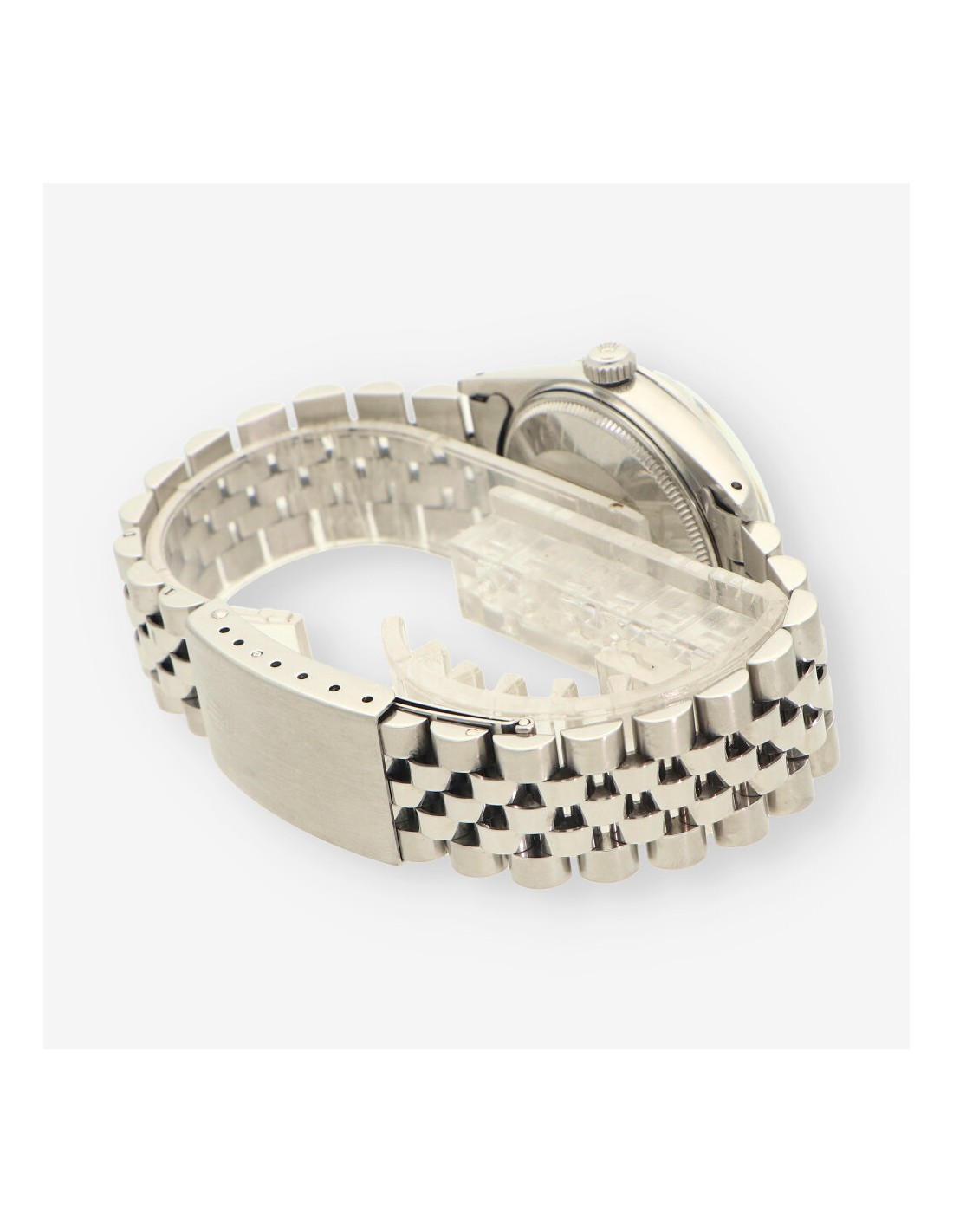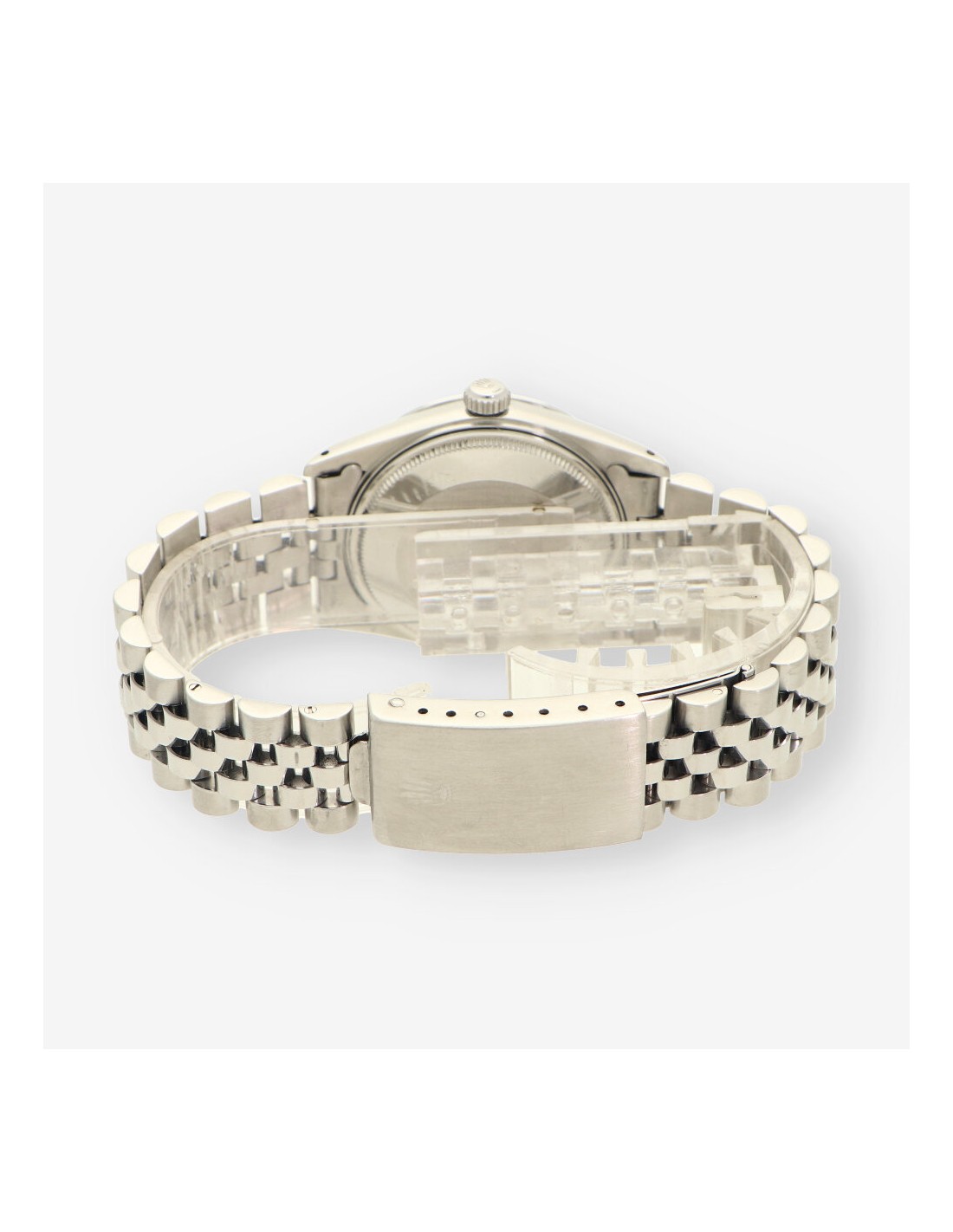 Este Rolex Date modelo 15000, aproximadamente del año 1982. Está equipado con el calibre automático 3035, que ofrece una reserva de marcha de 48 horas y cuenta con 27 joyas, asegurando un funcionamiento óptimo y continuo. La caja de acero de 34 mm resalta la esfera blanca adornada con números romanos, aportando una combinación perfecta de funcionalidad y estilo elegante. La correa Jubilee mejora la comodidad y añade un toque de distinción, convirtiendo este reloj en una opción ideal tanto para coleccionistas como para quienes aprecian accesorios clásicos y confiables. Resistente al agua hasta 10 ATM, este Rolex Date es más que un reloj; es un ejemplo de la artesanía y la tradición de Rolex, perfecto para uso diario o como complemento en ocasiones especiales.