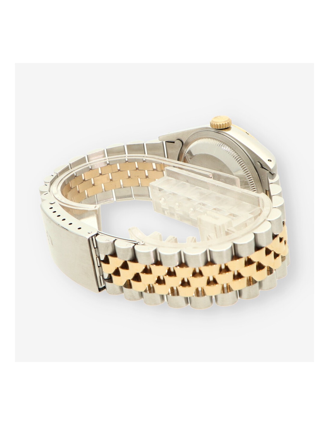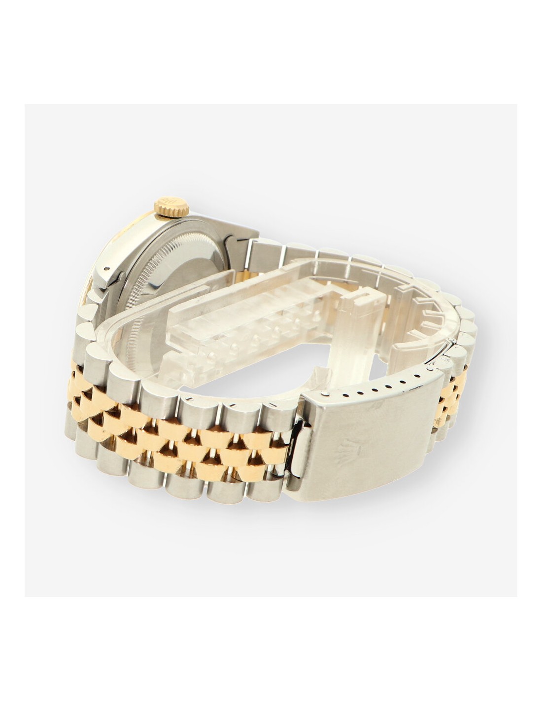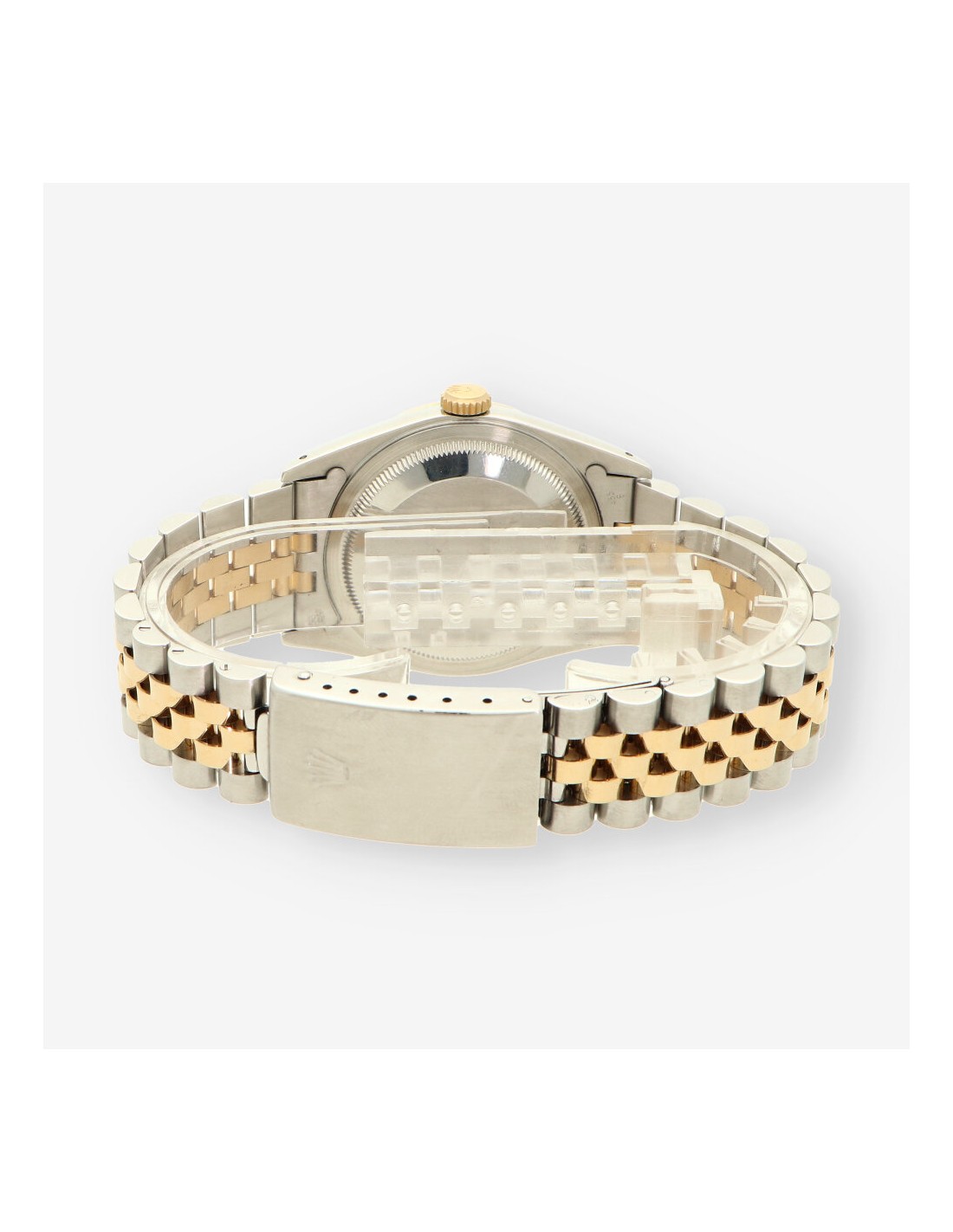 Magnifico Rolex mixto de segunda mano en perfecto estado de marcha y conservación. Ref: 16233. Cuerda automática del calibre 3135 con una reserva de marchas de 42h. Caja en acero y oro 36mm con cristal zafiro, fondo dorado y sin números. Correa en acero y oro y cierre de broche plegable en acero. Año 1990 (aprox).