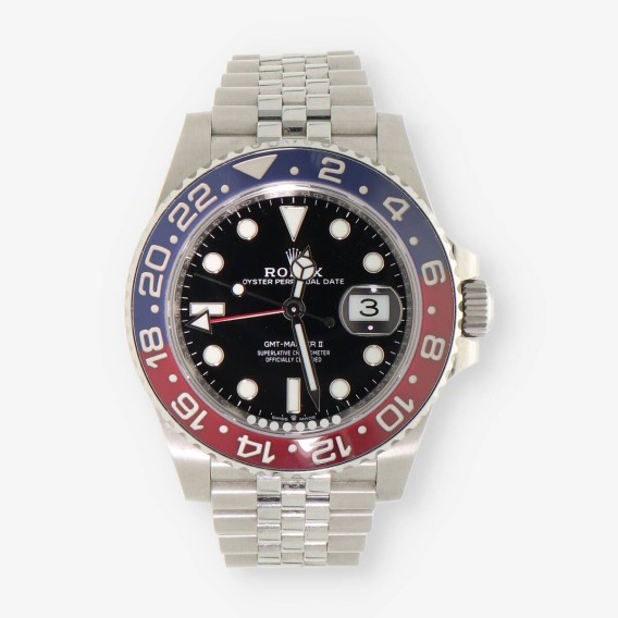 Magnífico Rolex GMT Master II Pepsi de segunda mano en perfecto estado de marcha y conservación. Ref: 126710BLRO, con cuerda automática del calibre 3285. Caja de 40mm en acero con cristal zafiro, fondo negro sin cifras, con una reserva de marcha de 70 horas. Bisel cerámico y resistencia al agua de 10 atmósferas. Correa y cierre en acero. Año 2020