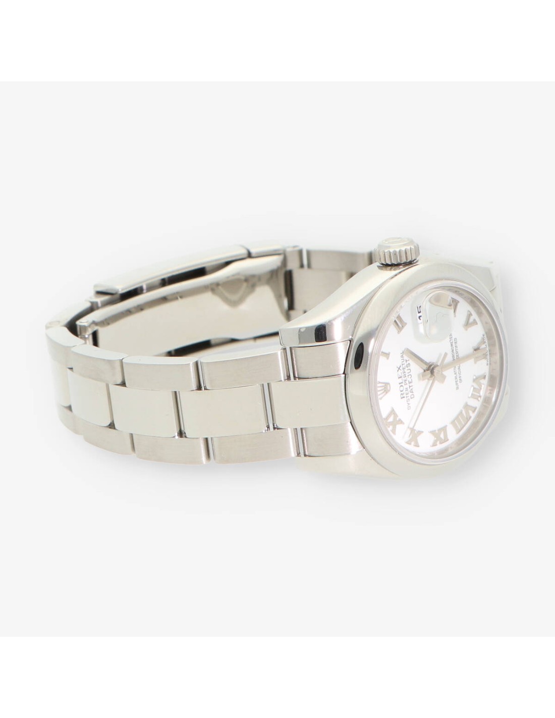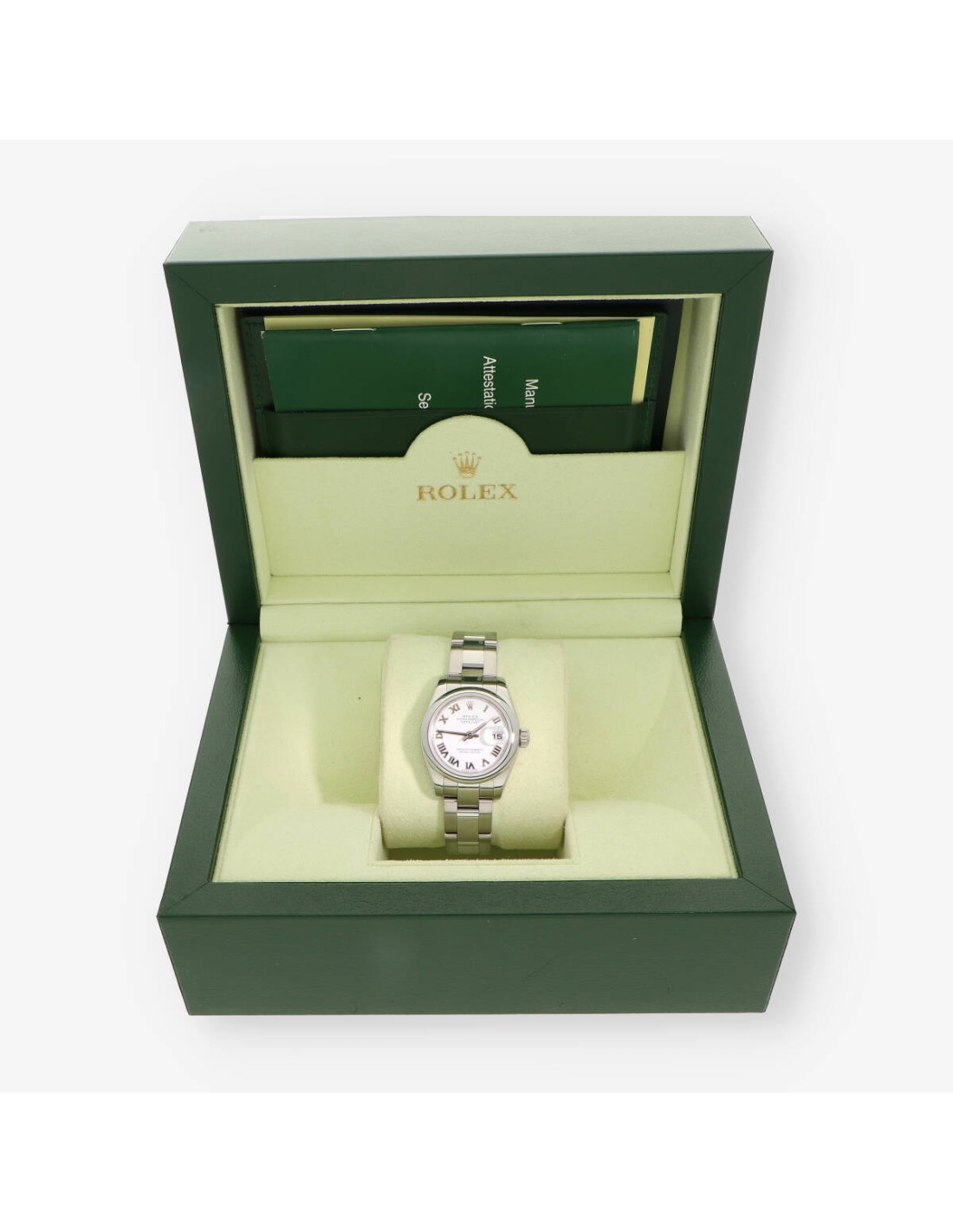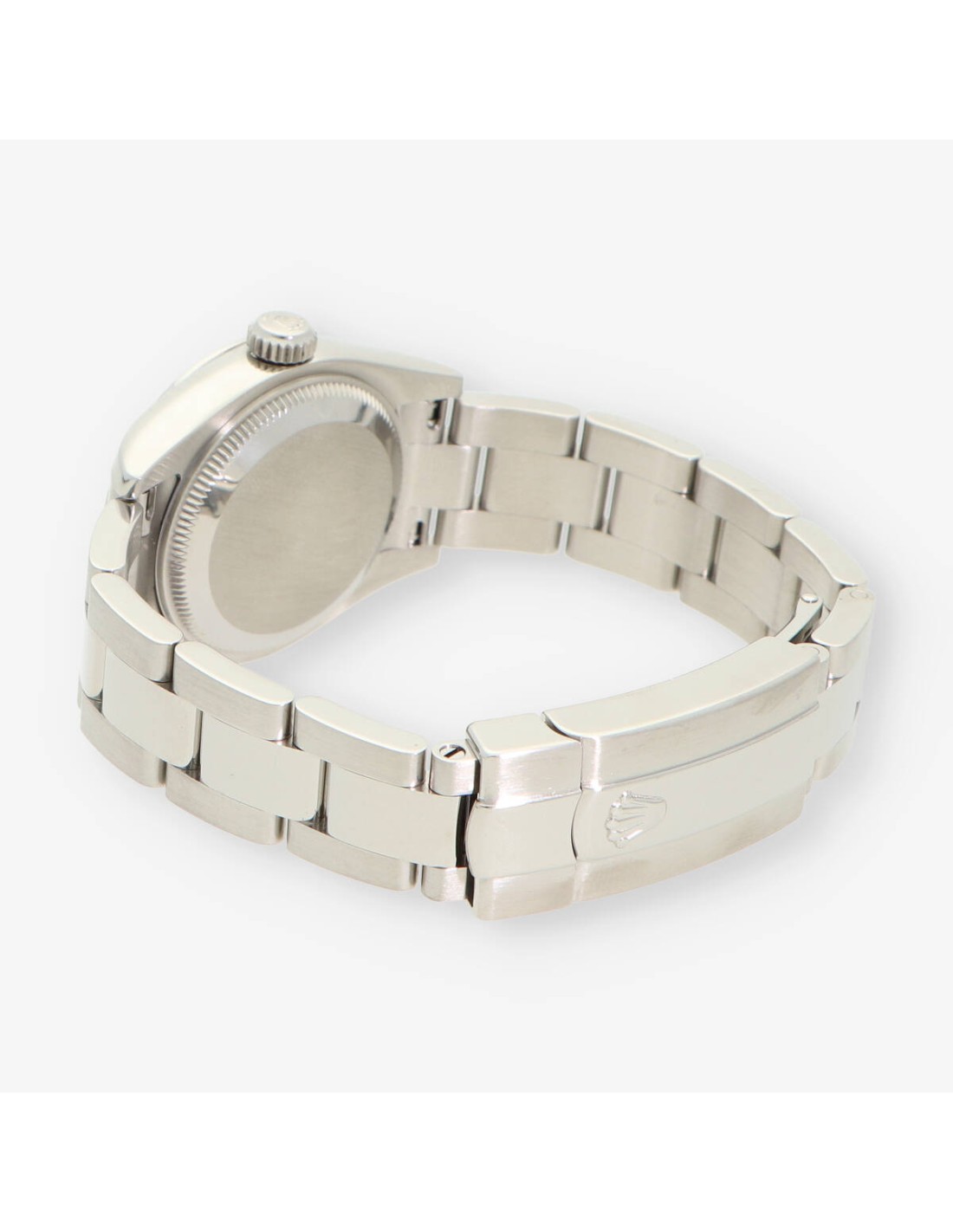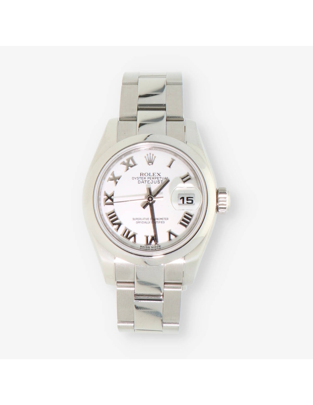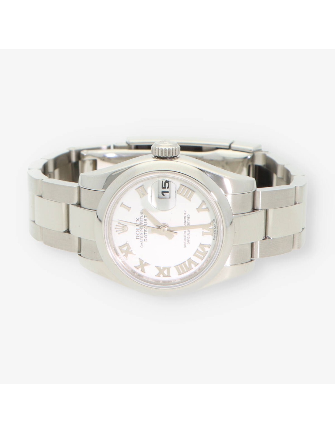 Magnifico Rolex Lady Datejust de segunda mano en perfecto estado de marcha y conservación. Ref: 179160 de cuerda automática del calibre 2235 con una reserva de marchas de 48 horas. Caja de 26mm en acero bisel en oro blanco con cristal zafiro, fondo blanco con números romanos. Resistencia al agua de 10 atmósferas. Cierre de broche plegable en acero y correa en acero. Incluye caja y documentación. Año 2013.