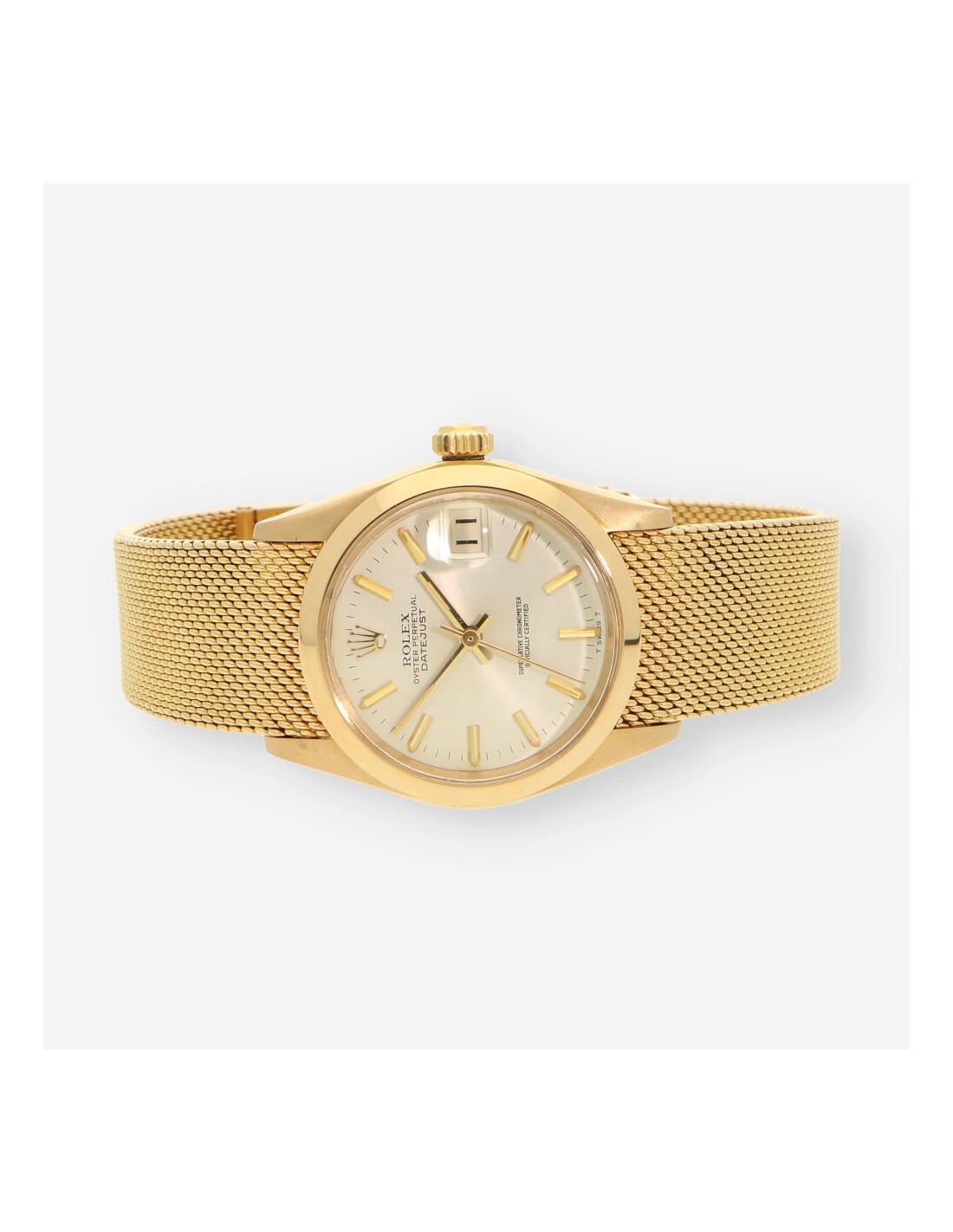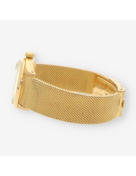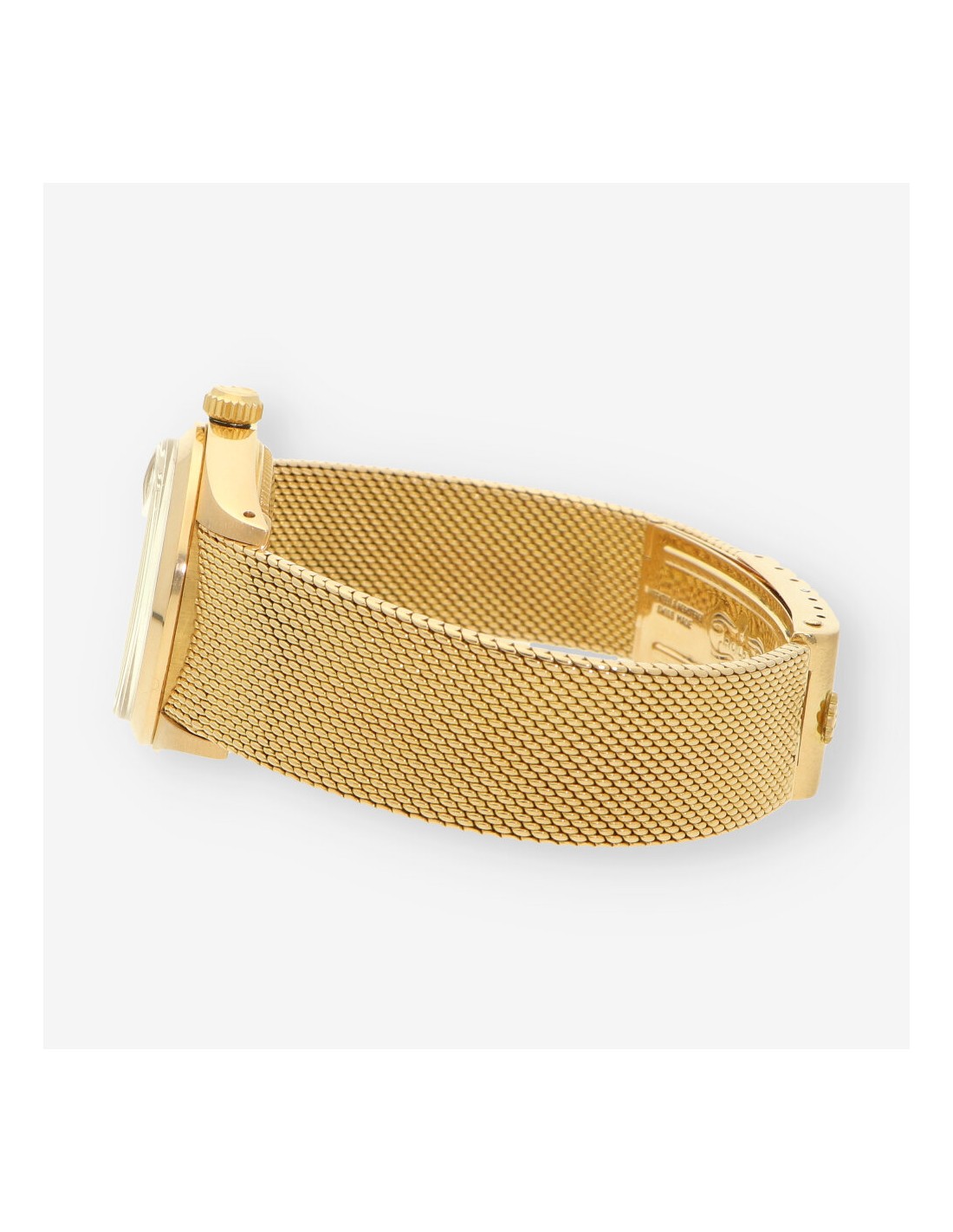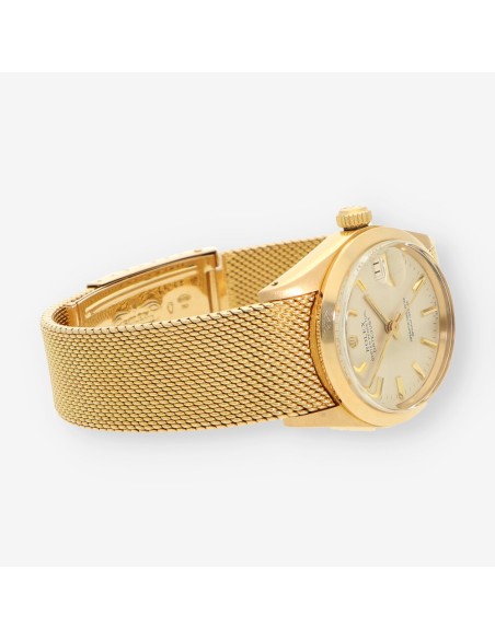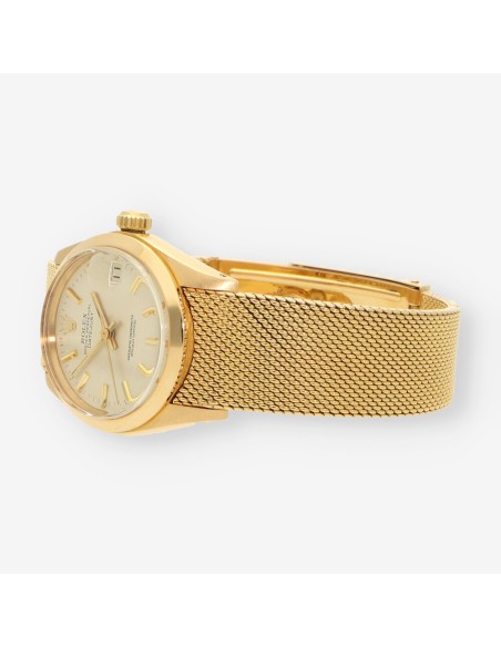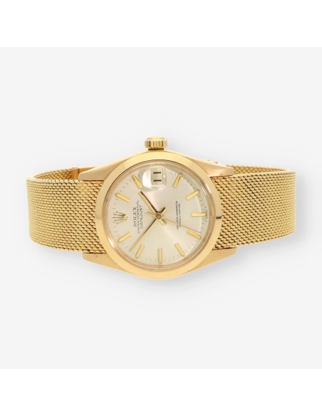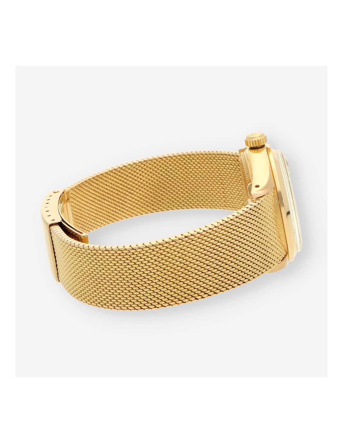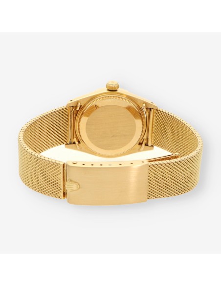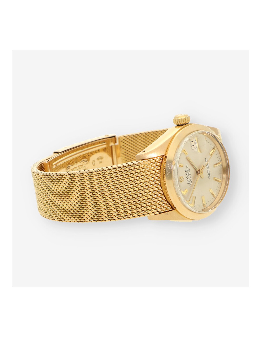 Rolex Lady Datejust ref. 6824 en oro amarillo de 18kt. Reloj automático con calibre Rolex 2030, reserva de marcha de 48 horas y 28 rubíes. Caja de 31 mm de diámetro en oro amarillo con cristal Plexiglas y bisel liso del mismo material. Esfera dorada sin cifras, con un diseño elegante y limpio. Hermeticidad garantizada hasta 10 ATM. Una pieza clásica y refinada, perfecta para quienes buscan distinción y tradición en un tamaño femenino. Año 1977 aprox.