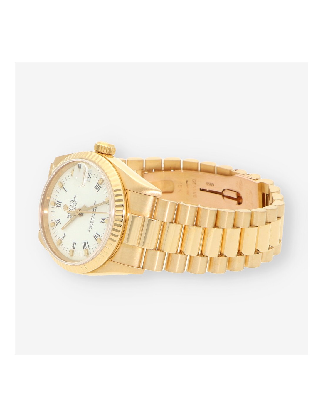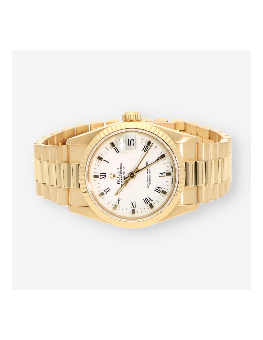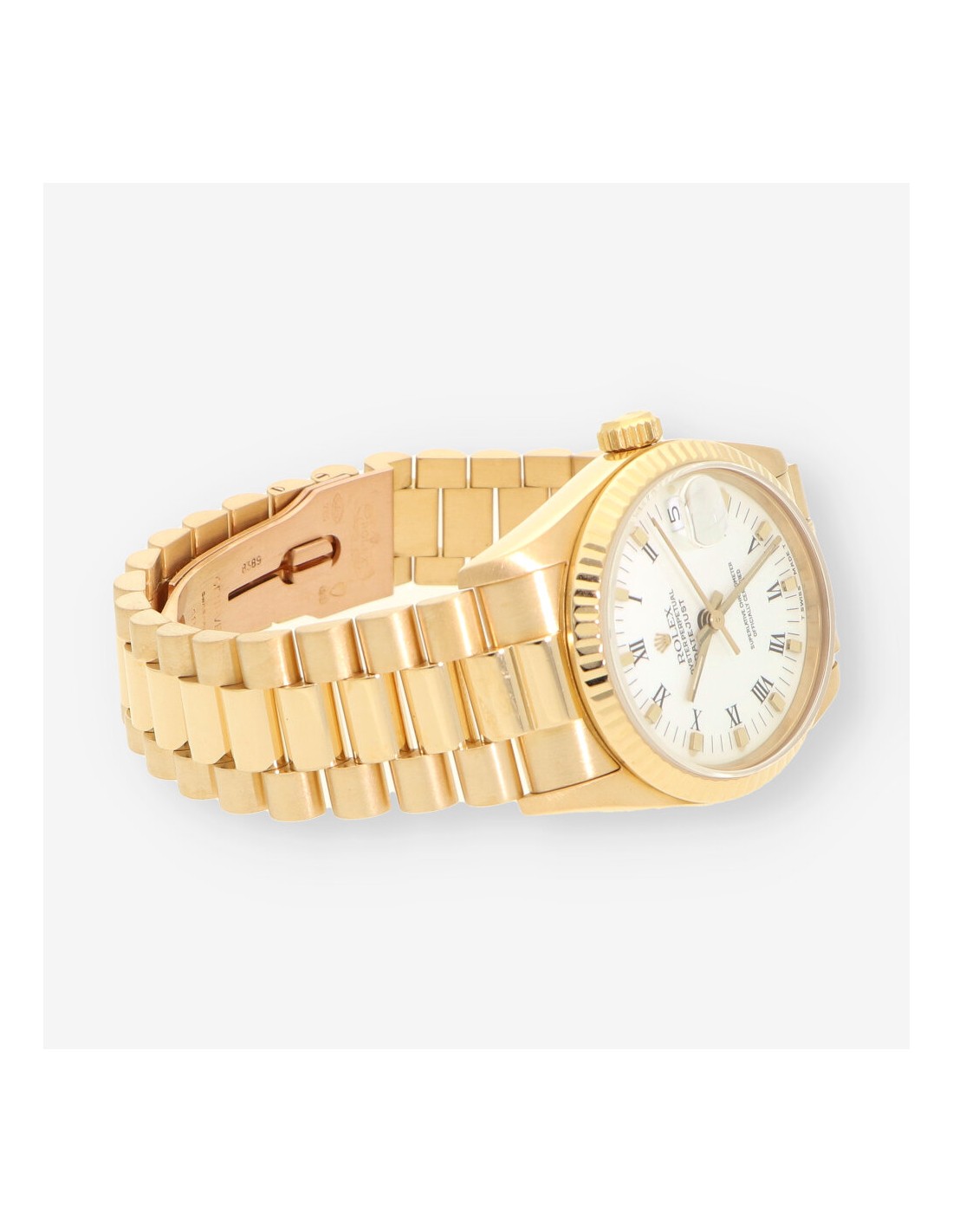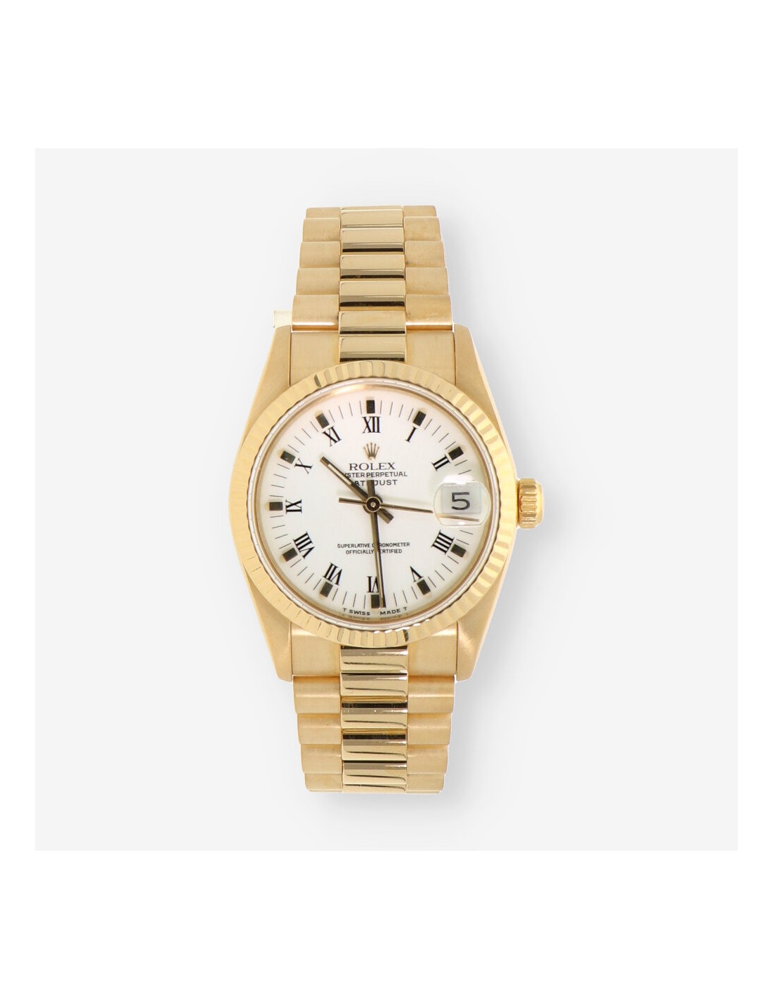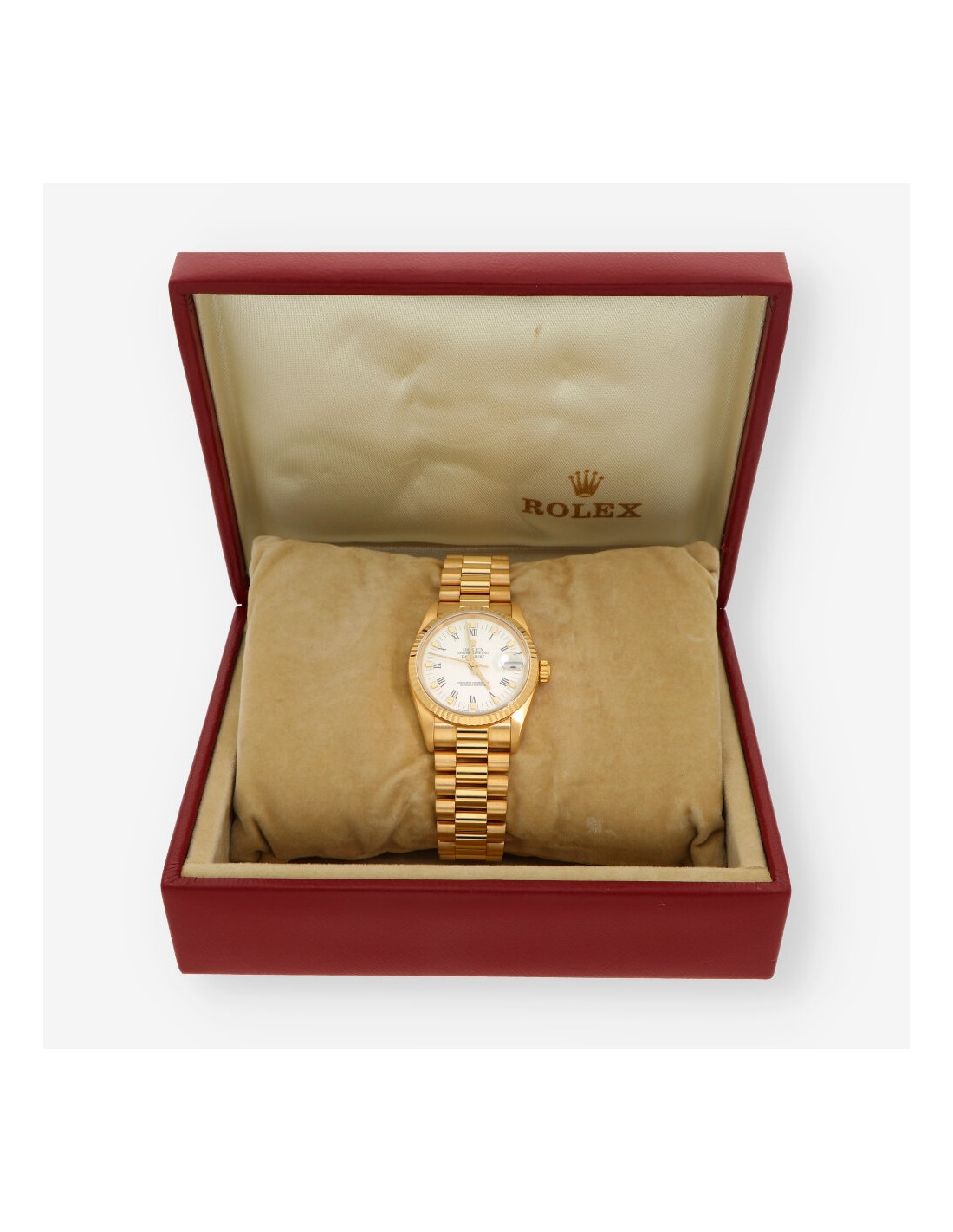 Magnifico rolex de segunda mano en perfecto estado de marcha y conservación con referencia: 68278. Cuerda automática del calibre 2135 con una reserva de marchas de 42 horas. Caja de 31mm en acero y oro, cristal zafiro, esfera blanca con números romanos y resistencia al agua de 10 atmósferas. Correa y cierre en oro de primera ley.