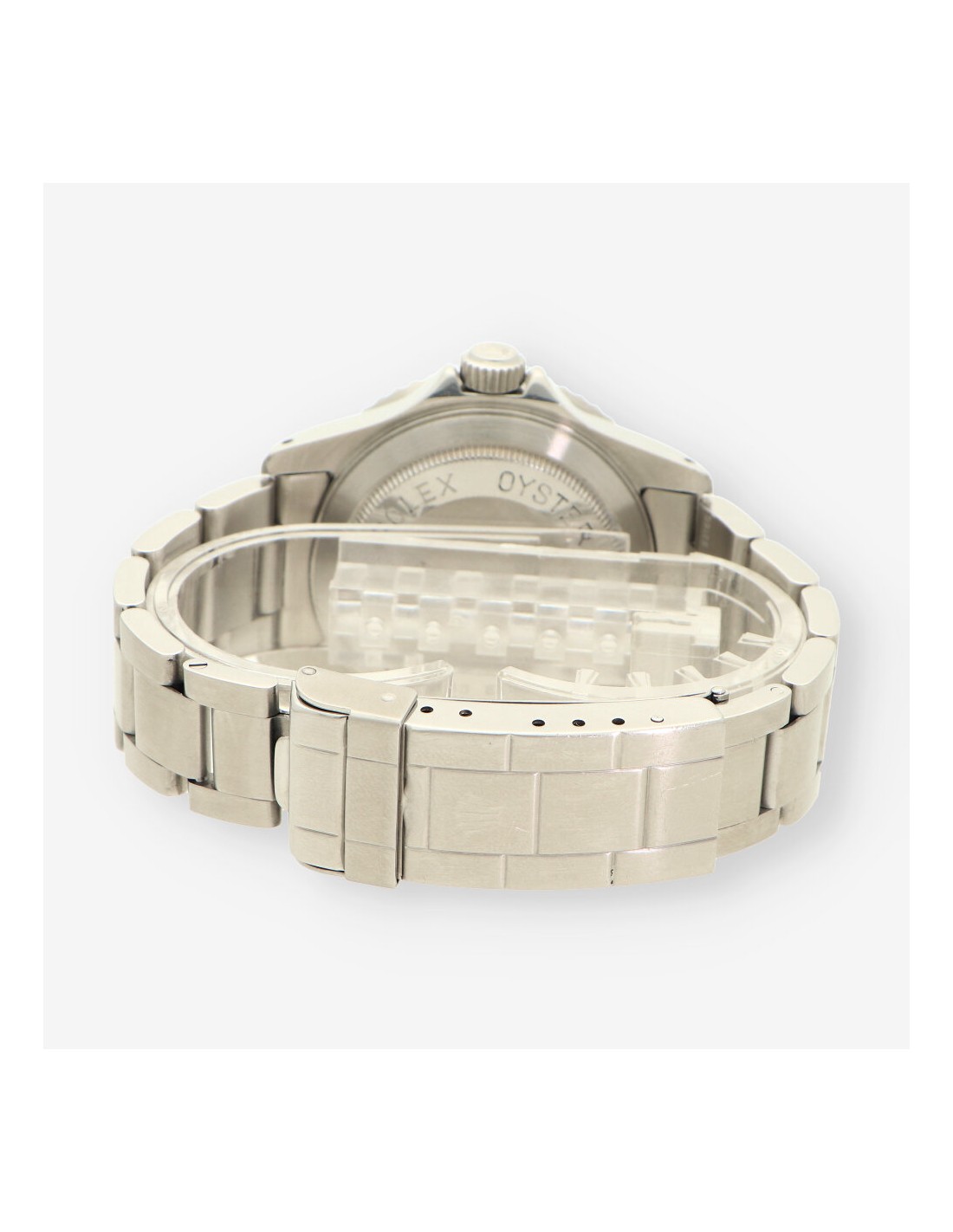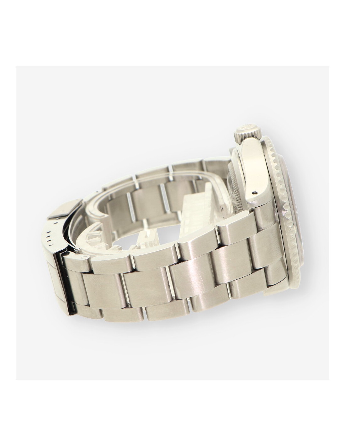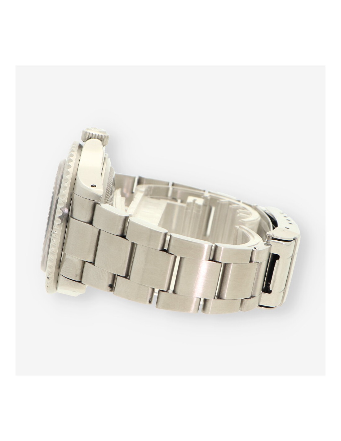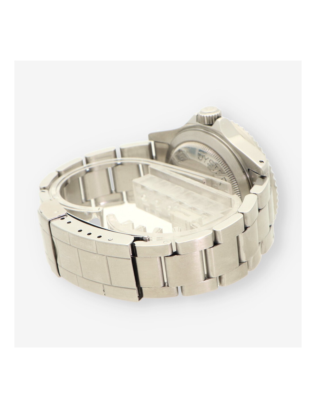 Magnífico Rolex Sea-Dweller date de segunda mano en perfecto estado de marcha y conservación. Ref: 16660 del año 1981 (aprox), con cuerda automática. Caja de 40mm en acero con cristal zafiro, fondo negro sin cifras, con una reserva de marcha de 48 horas y resistencia al agua de 120 atmósferas. Correa y cierre en acero.