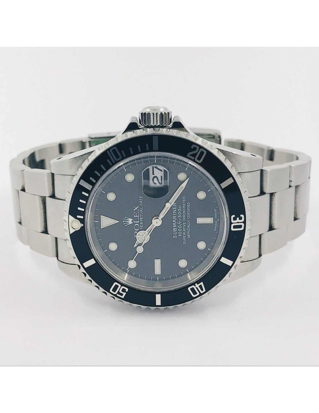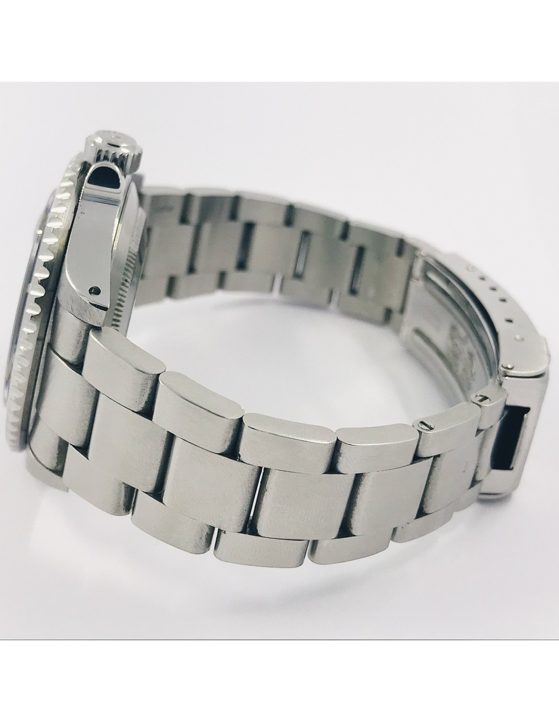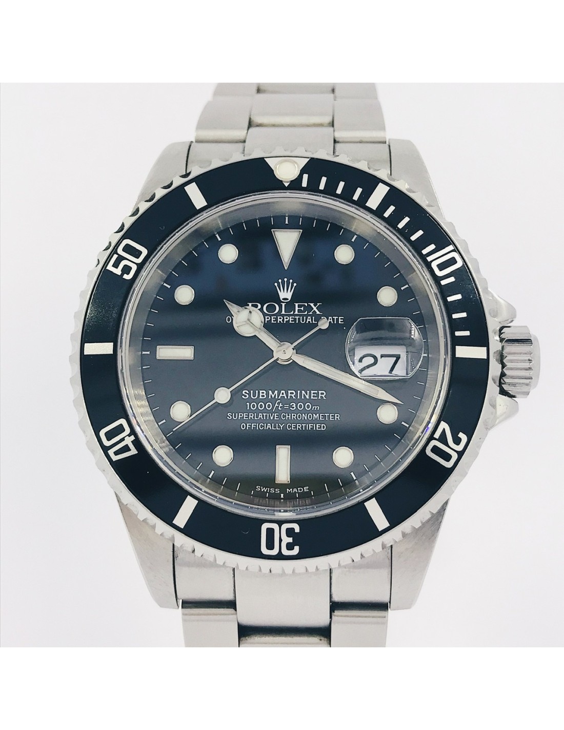 Magnífico rolex Submariner de segunda mano en perfecto estado de marcha y conservación. Ref: 16610 de año 2000, con cuerda automática del calibre 3135. Caja de 40mm en acero con cristal zafiro, fondo negro sin cifras, con una reserva de marcha de 48 horas y resistencia al agua de 30 atmósferas. Correa y cierre en acero.