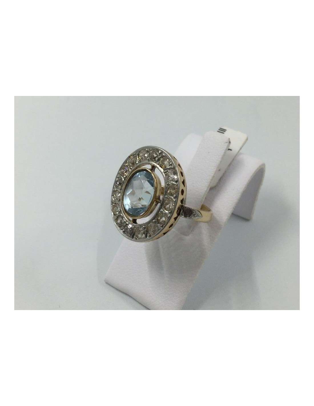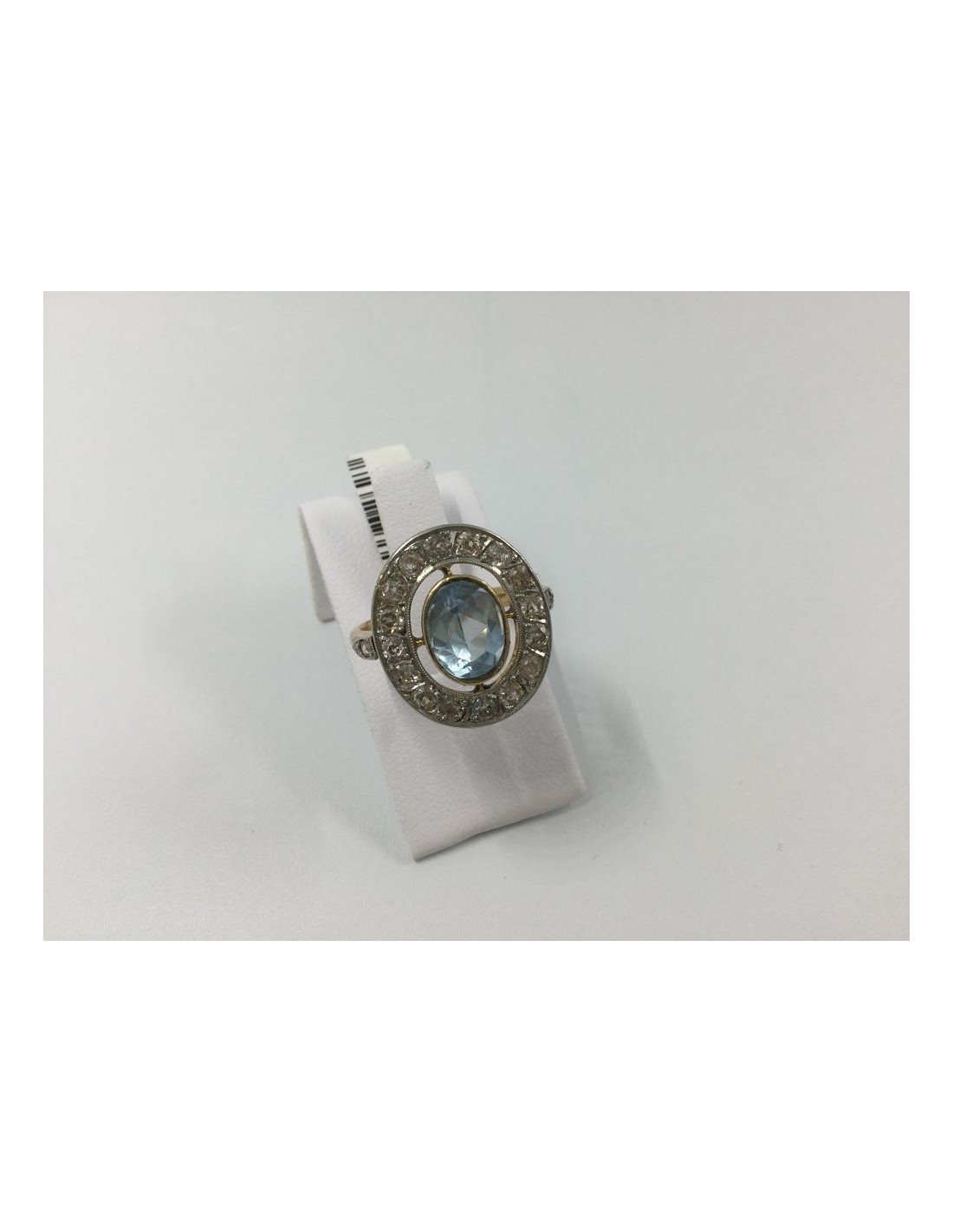Anillo art decó en oro de 18 kt, brillantes y topacio