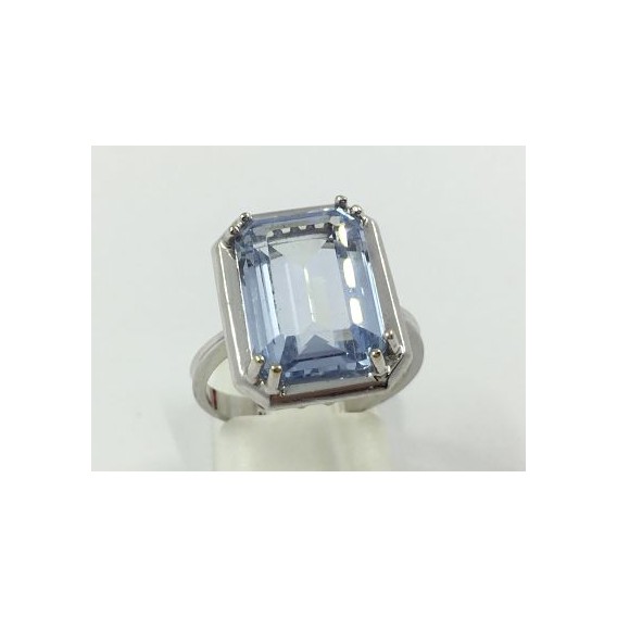 Anillo de segunda mano en oro blanco de 19 kt. con piedra azul. Talla: 13. Peso: 5,6 gr.