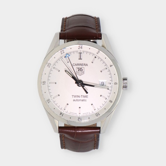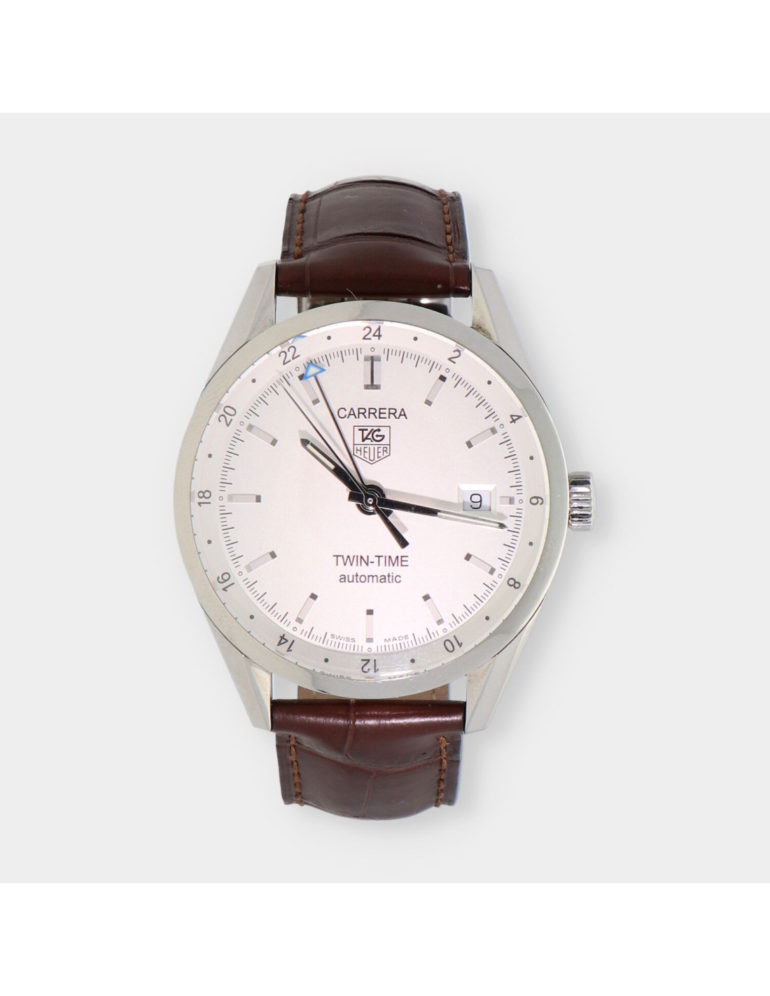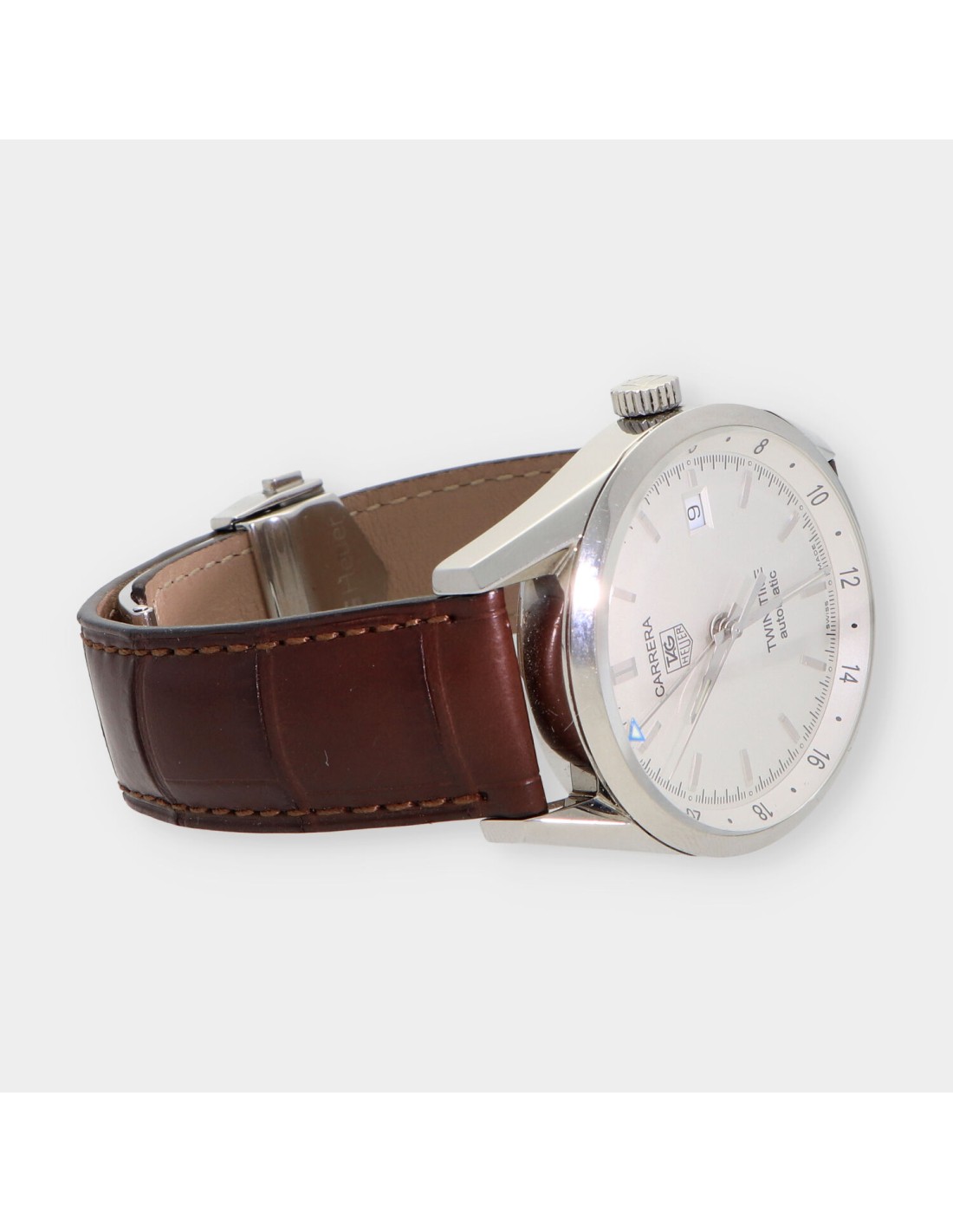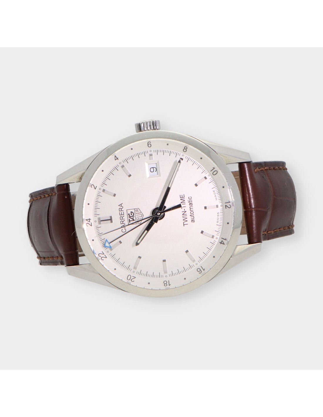 Magnifico tag Heuer Carrera de segunda mano en perfecto estado de marcha y conservación. Ref: WV2116 de cuerda automática con caja  de 39mm en acero, cristal zafiro, fondo blanco sin cifras y con números arábigos en el bisel. Correa de piel en color marrón con cierre en acero.